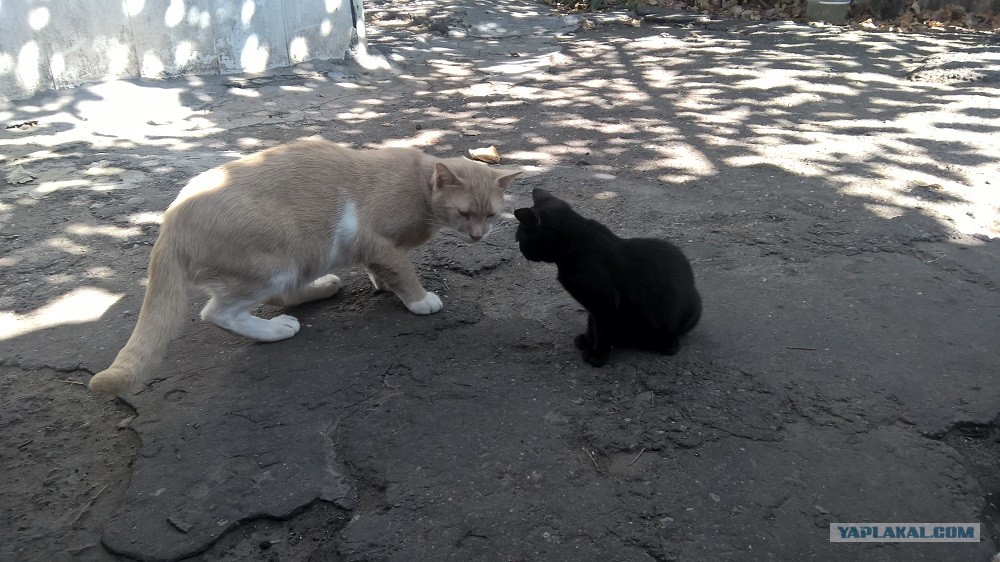 На даче бегают два черных вислоухих котенка. Вечно голодные. Дикие, в руки не даются.