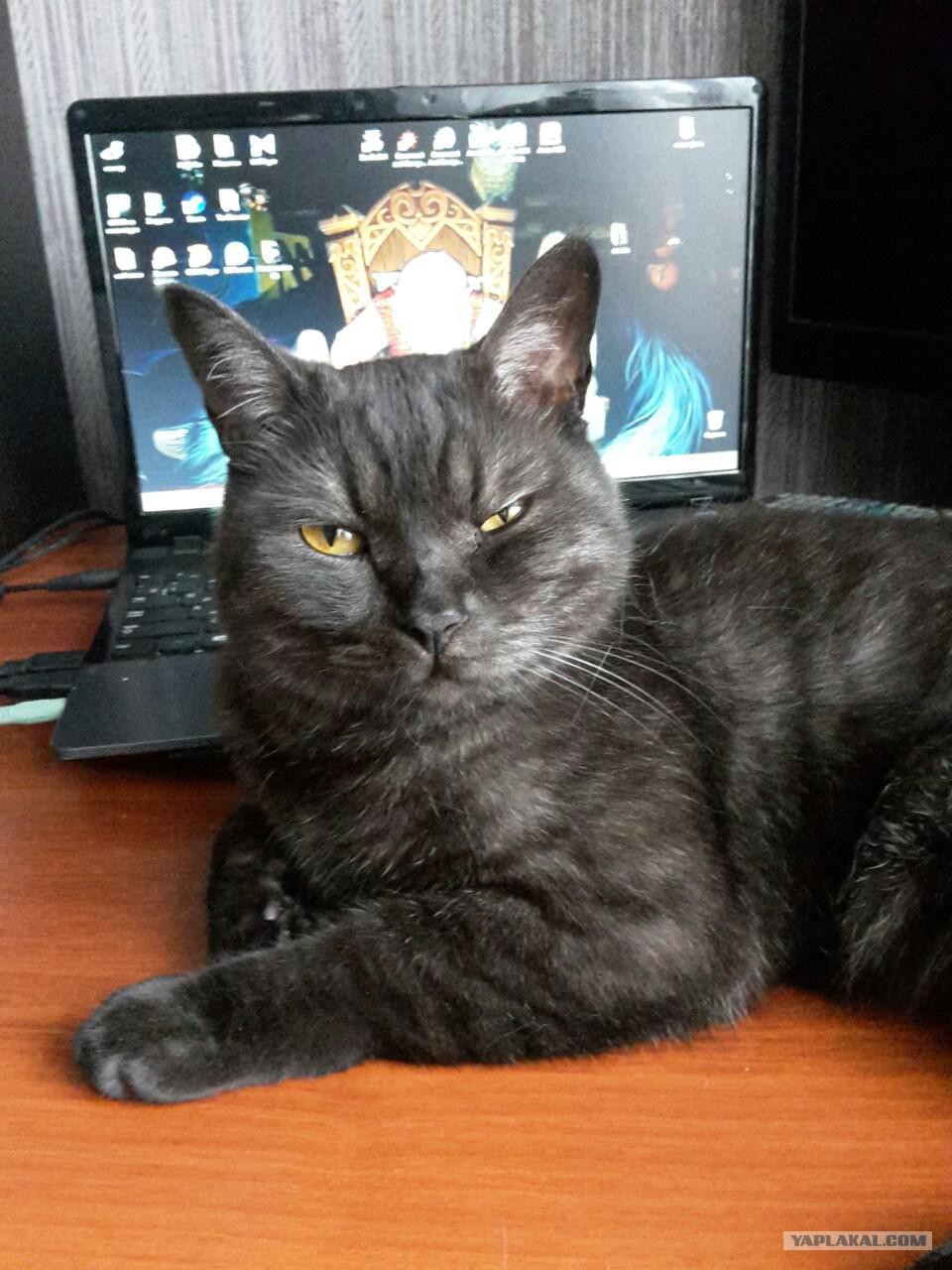 У кота фрустрация: очень хочет получить что-то, но знает, что не может. А чёрненький сопереживает.