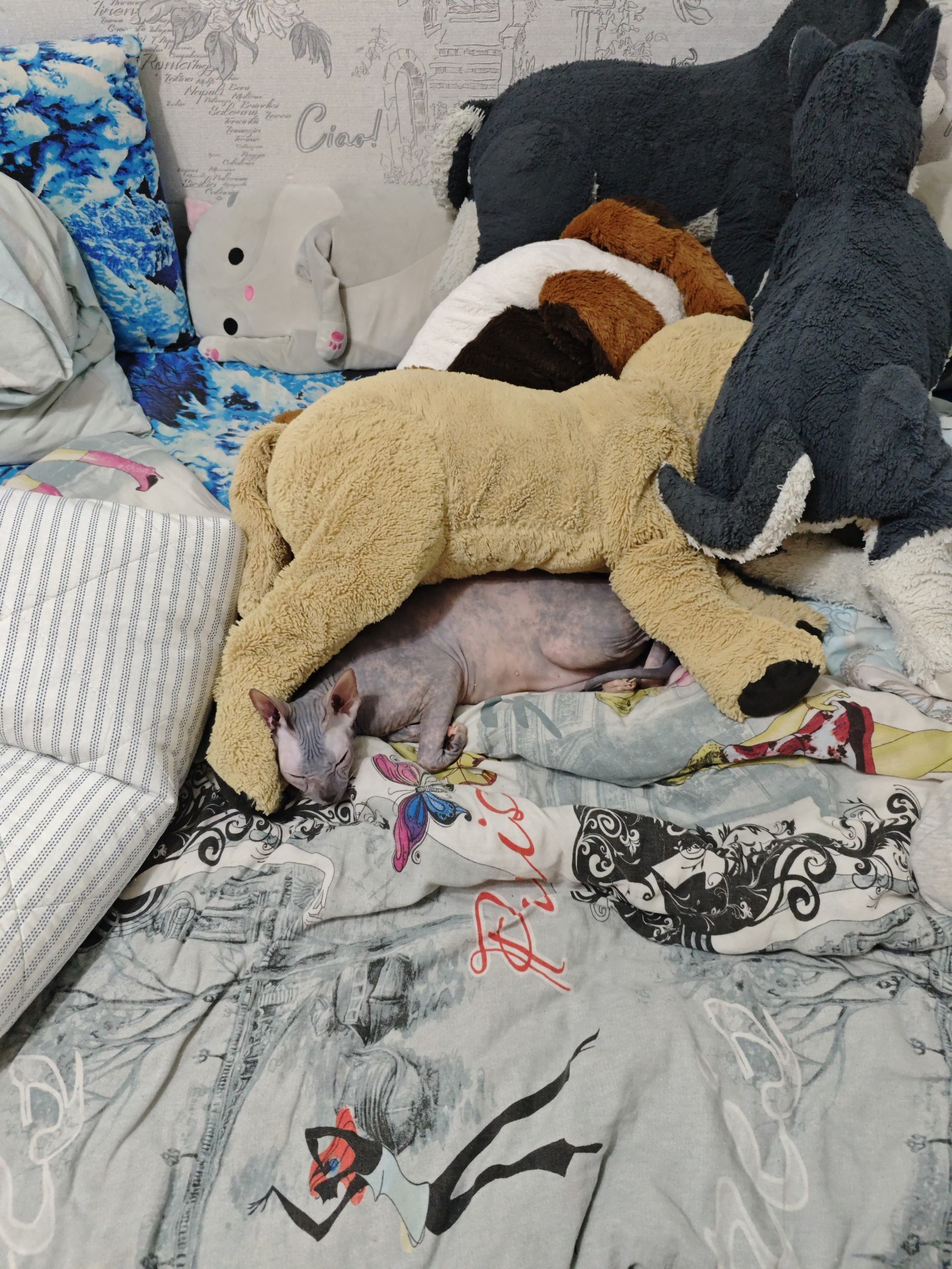 Поддерживаю любителей сфинксов. Оказалось умнейшее существо, говорливее ориенталов, но тише чем они. Все делаем вместе, все под ее контролем и комментариями. Спит всю ночь рядом, бонусом игрушки приносит под одеяло