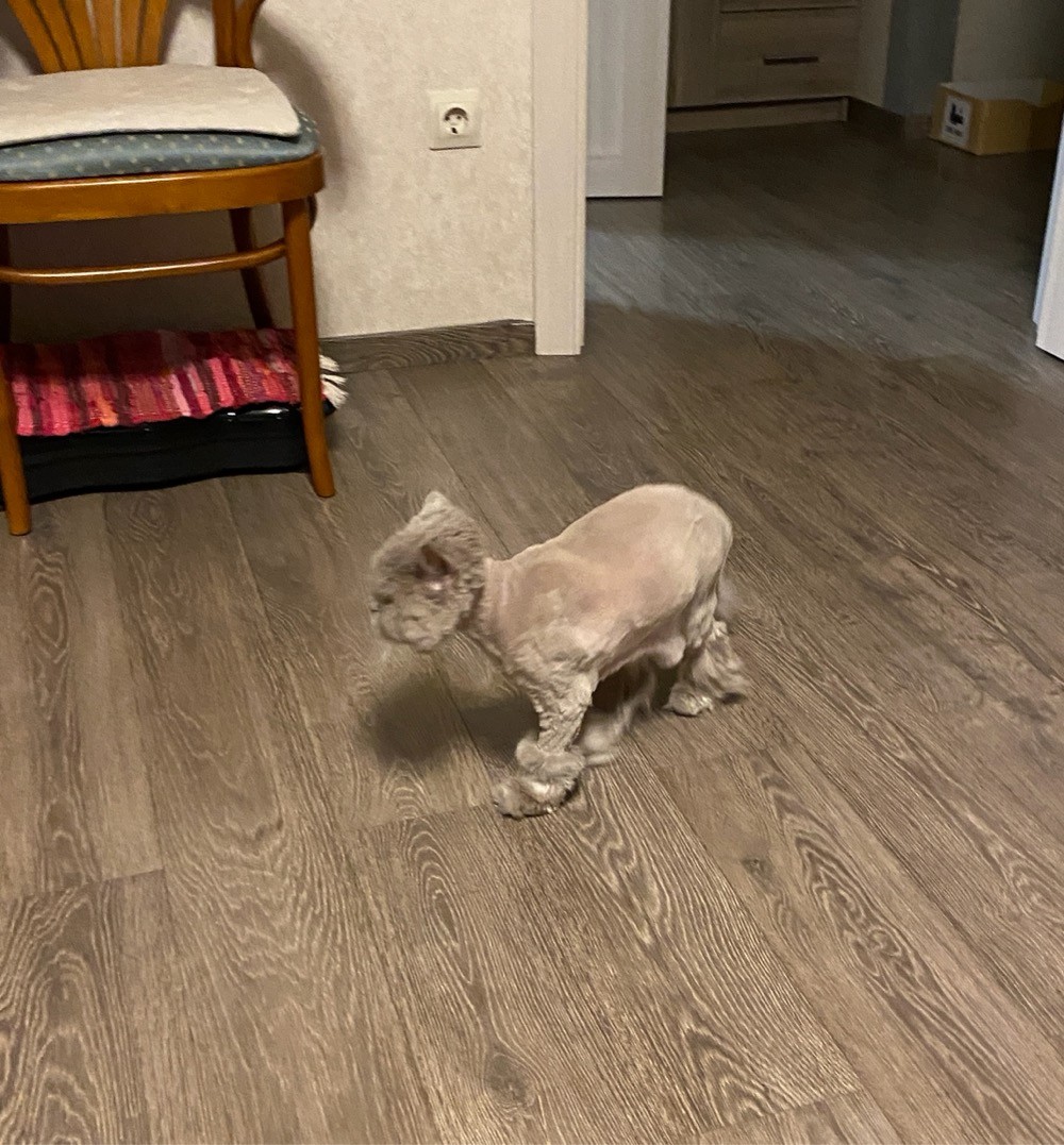 Любопытная. Постоянно лезет туда, куда не просят (Пару раз чуть не затоптал. Благо у меня уже не первый кот, и я научился видеть лишние движения под ногами.). Ласковая. Сразу лезет, чтоб её погладили. НО!!!! Где нормальная шерсть? А не вот эта мелкая, еле заметная, шёрсточка?