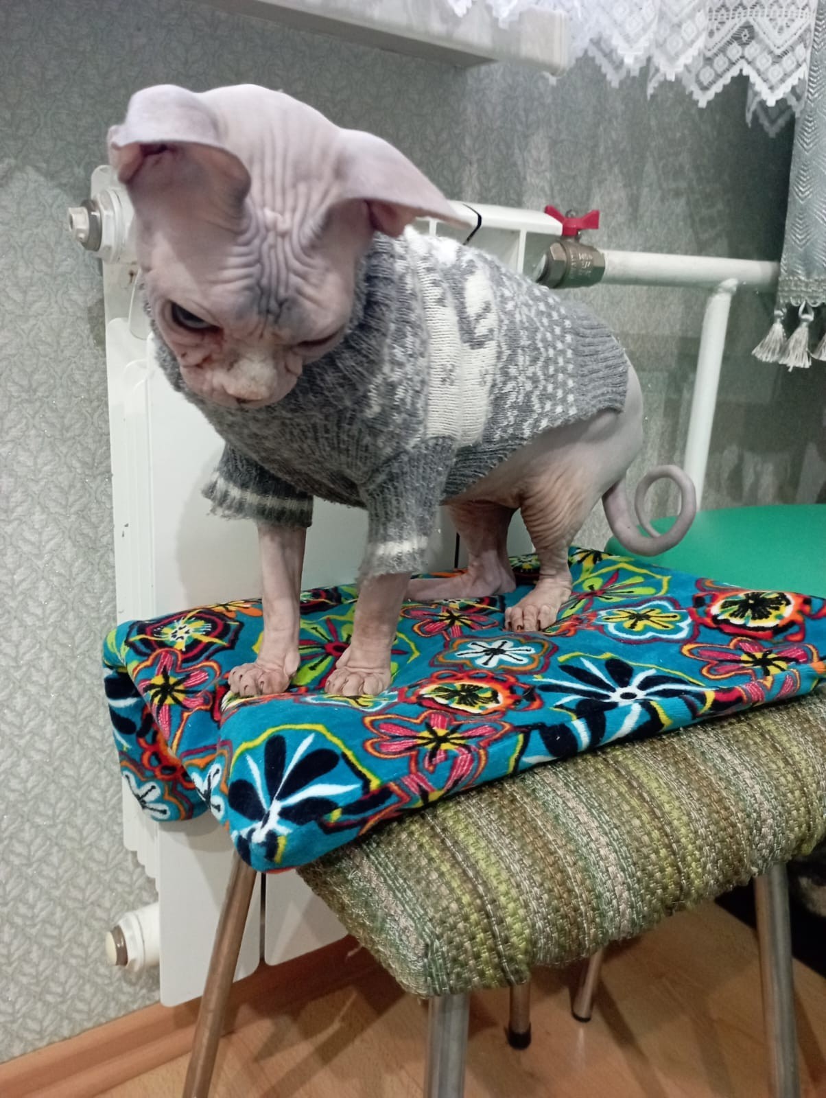 А сфинксу 7 лет и он молчун, практически никогда голос не подаёт. Занавески ободрал, потому как лезет к батареям. Характер пофигиста, делай с ним что хочешь, не вырывется, не орёт. Ебало только как у негра из мема какой пацан делает и всё lol.gif