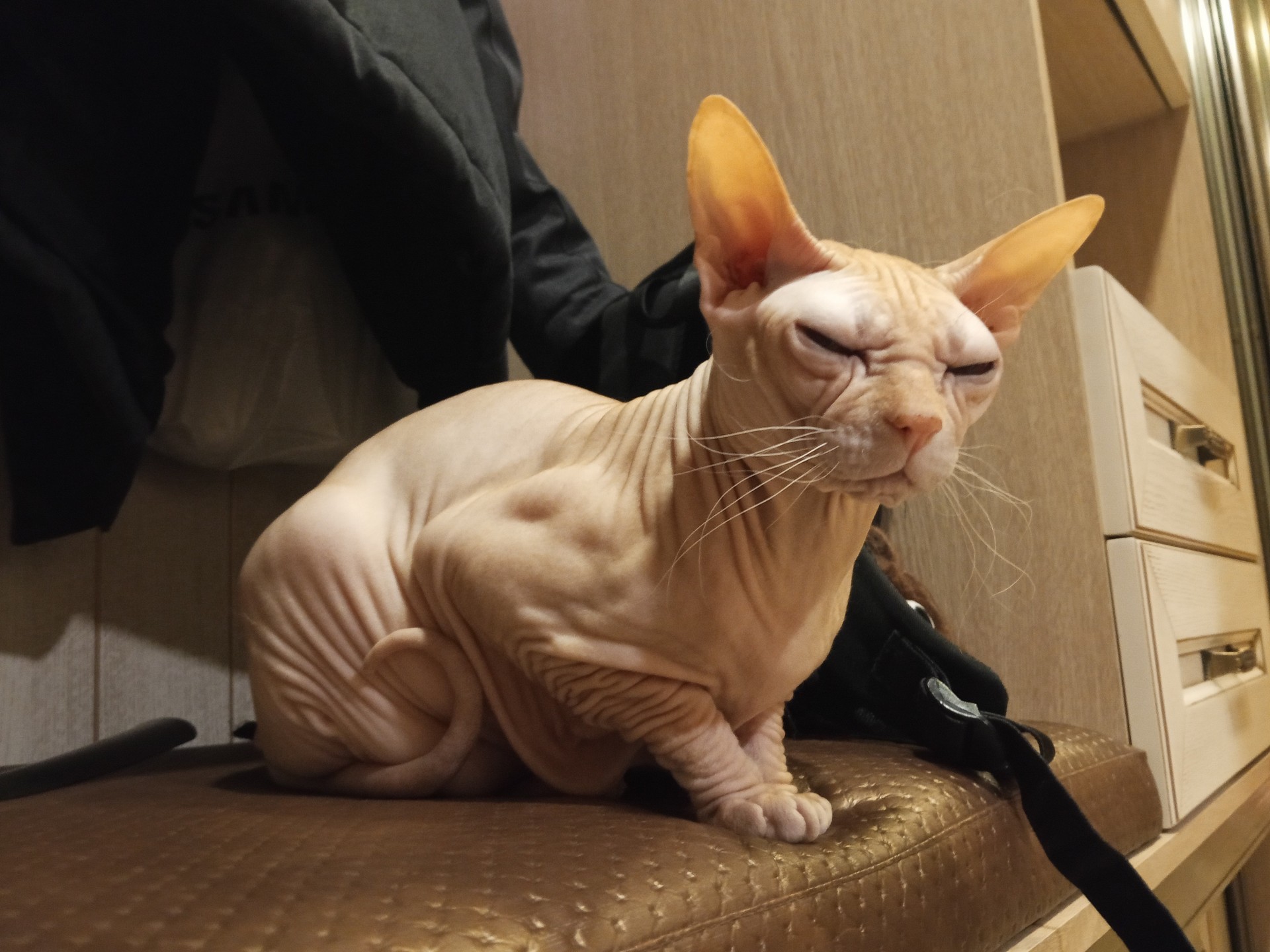 Летом прошлого года моей племяннице подарили котёнка Сфинкса, а я заглянул к ней по делам...