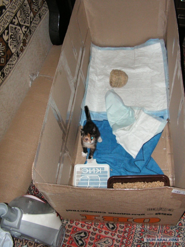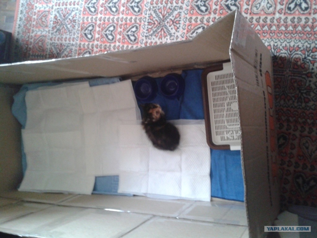 На передержке у него вооот такая большущая коробка в пол комнаты