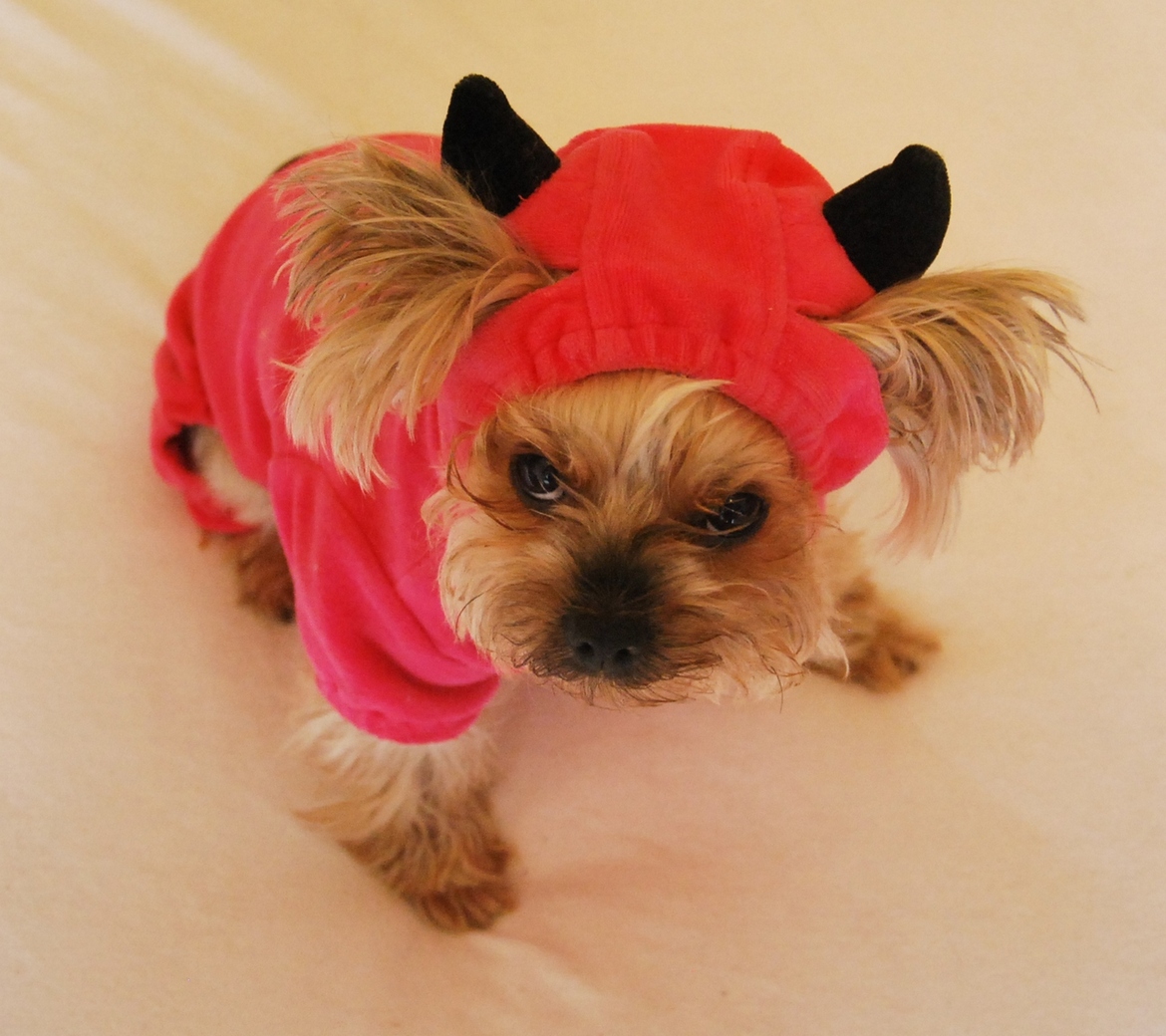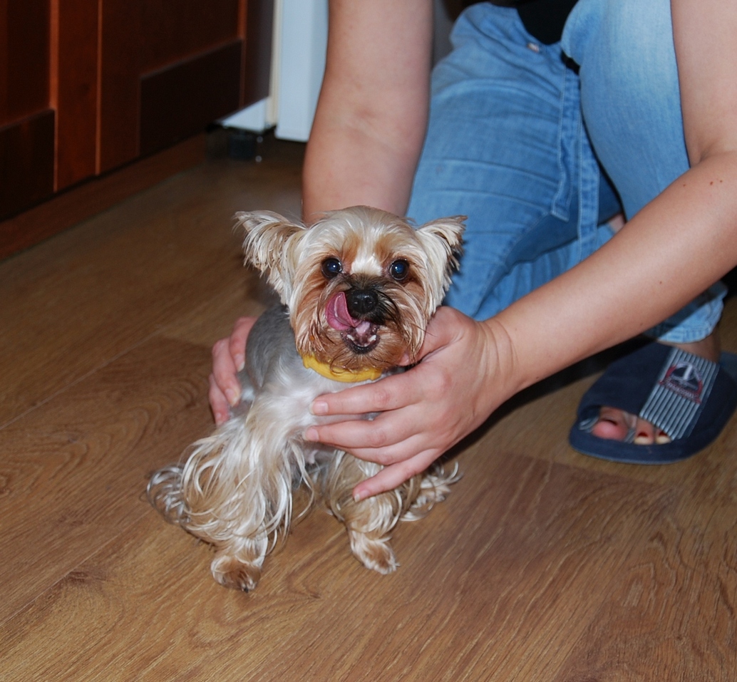 Ну ладно, повезли домой. По дороге купили всякого необходимого. Потеряшка оказалась йоркширским терьером-девочкой, ухоженой, с ошейником и клеймом, естественно в жутком стрессе.