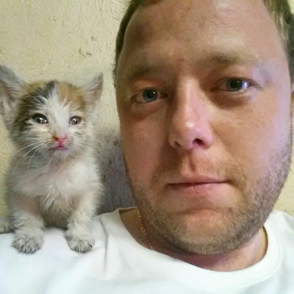 Так вот, достает из-за пазухи котейку, от роду максимум недели полторы, глаза закрыты, на них наросты дорожной грязи вперемешку с гноем (должны ли кошки в столь раннем возрасте открывать глаза или еще слепые, в душе не знаю, … не ветеринар я ни разу). Занес беднягу в гараж, положил в коробку, включил «ветерок» (китайский обогреватель на 2кВт)…. сидим ждем признаков жизни и через мин 20 зашевелилась… фууух.. выдыхнули. Видимо долго у дороги валялась, замерзла сильно, по ночам еще подмораживало.