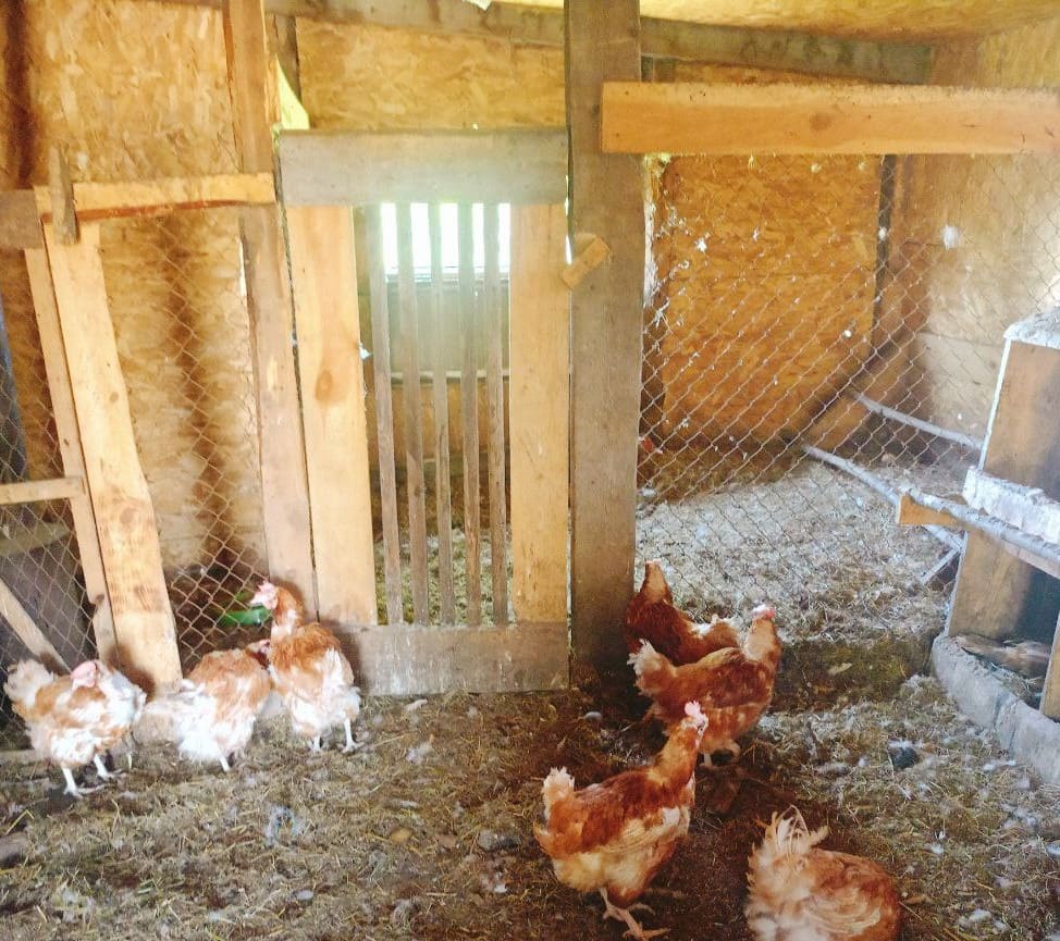 Последние дни на улице очень жарко и куры отказываются выходить на улицу