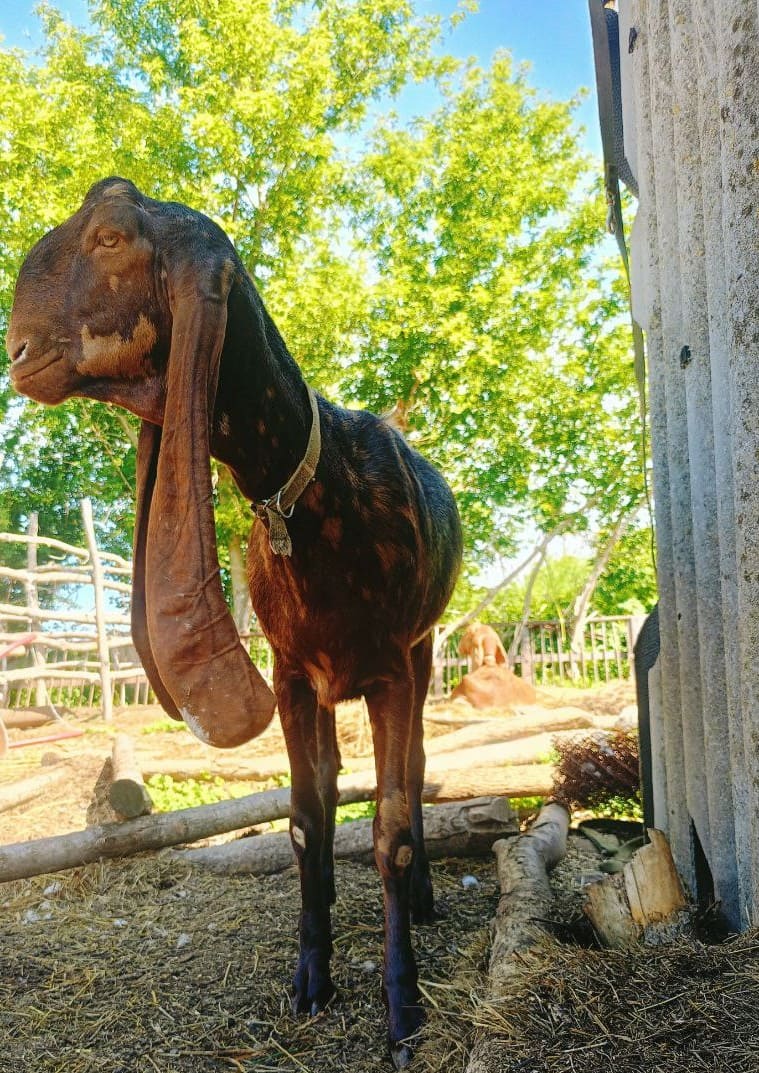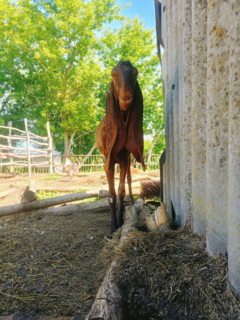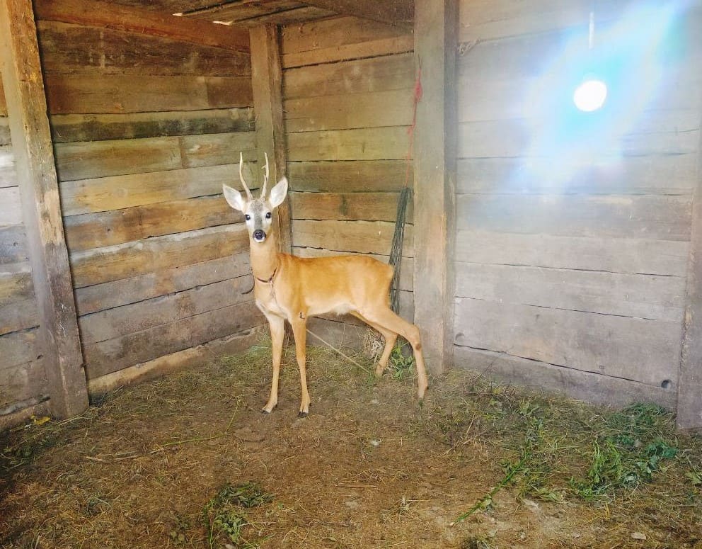 Кызенька постепенно привыкает к нам, стал есть ветки от плодовых деревьев. Ну и дробленку. Пока еще диковат, но мы работаем с ним над этим)))