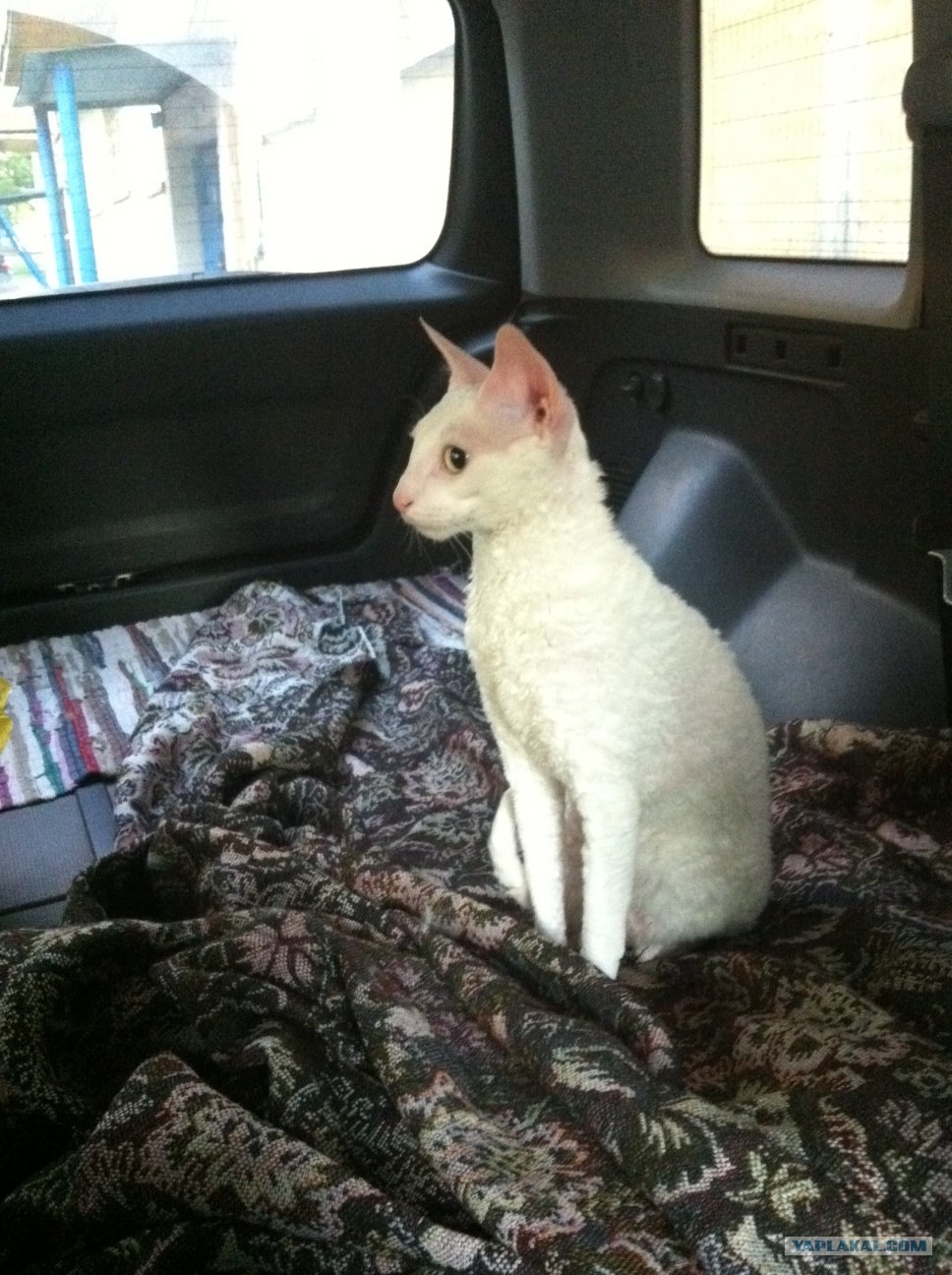 Беру с собой кошку, любит она какаться. Либо на коленке стоит и в окошко смотрит, либо же ложиться мне на горбушку ( по креслу залазит) и выглядывает из за головы.