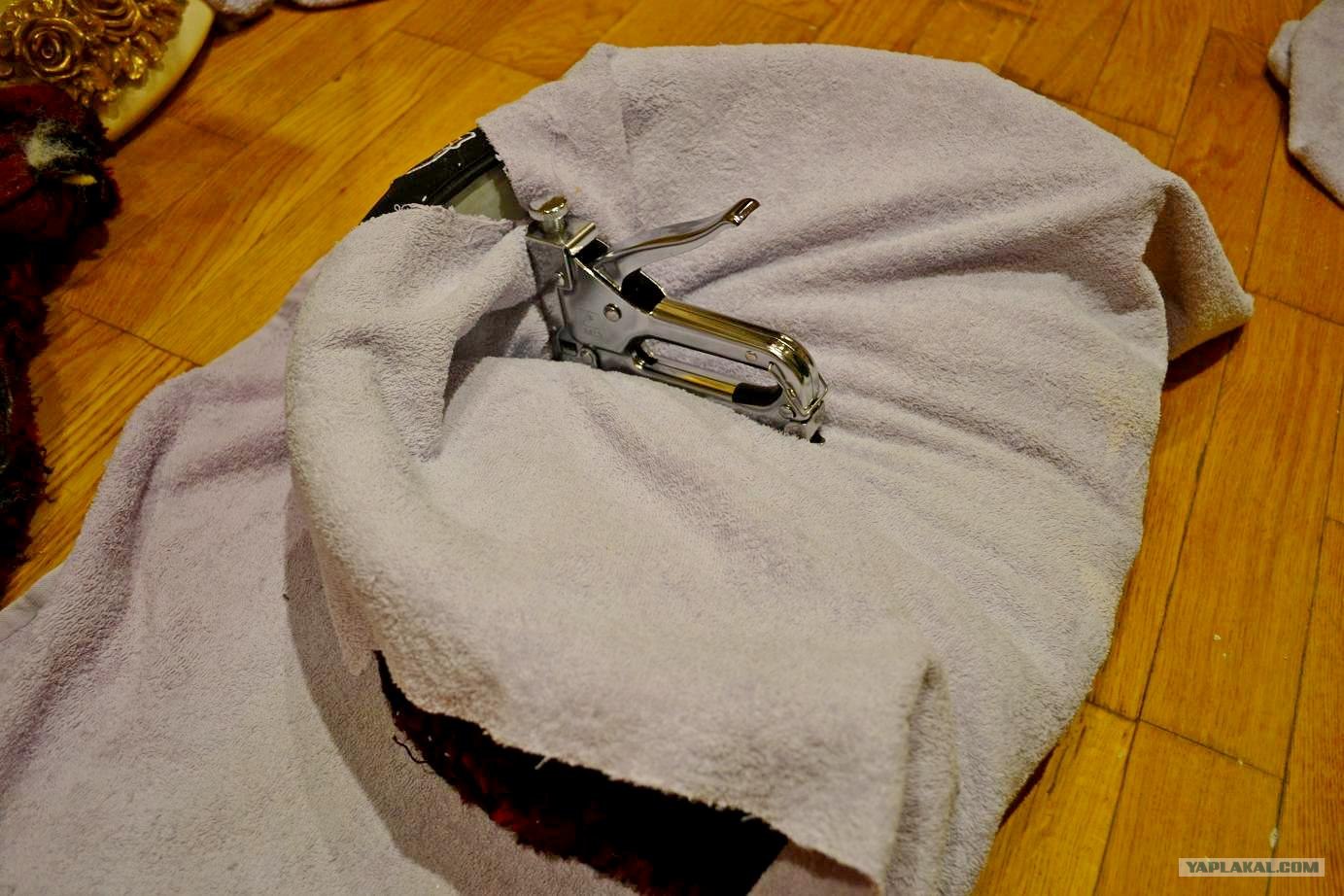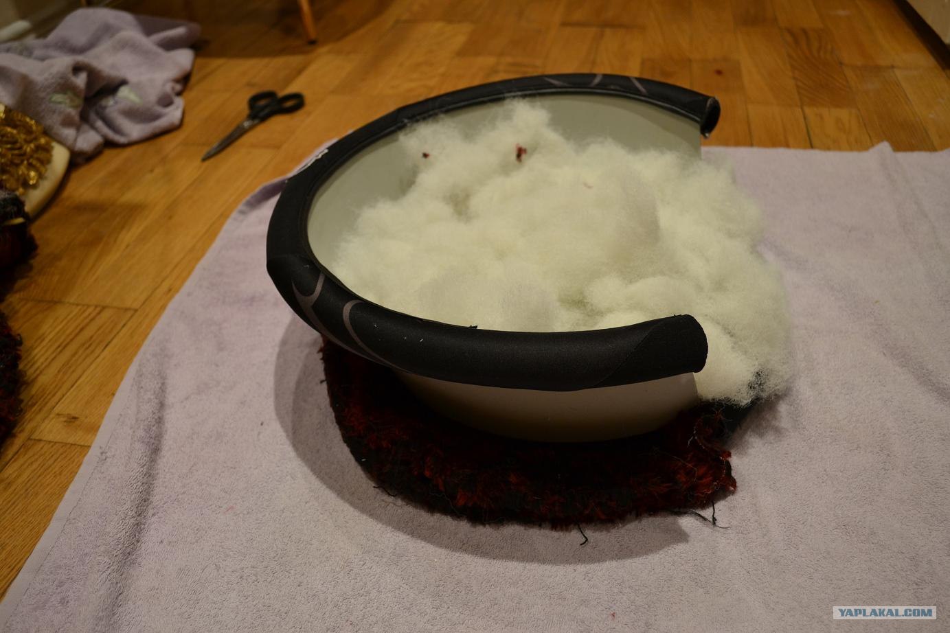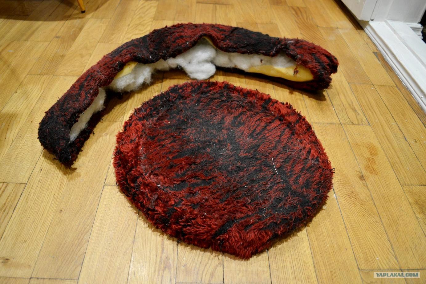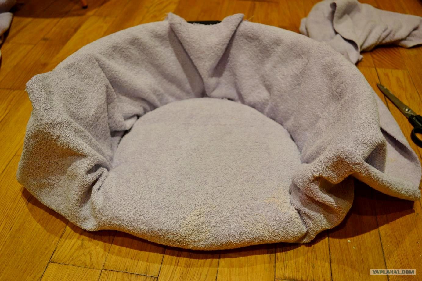 Умница-красавица, а спит на старой лежанке, которая так же была сделана руками год назад. Но тогда котейка была маленькая и помещалась в неё. А теперь Чуча отъела попу на барских харчах и неудобно ей уже, не помещается её тушка. Вот и решила я ей сделать новое спальное место, дабы не мучалось дитё. Купить конечно проще, но так ведь не интересно :)