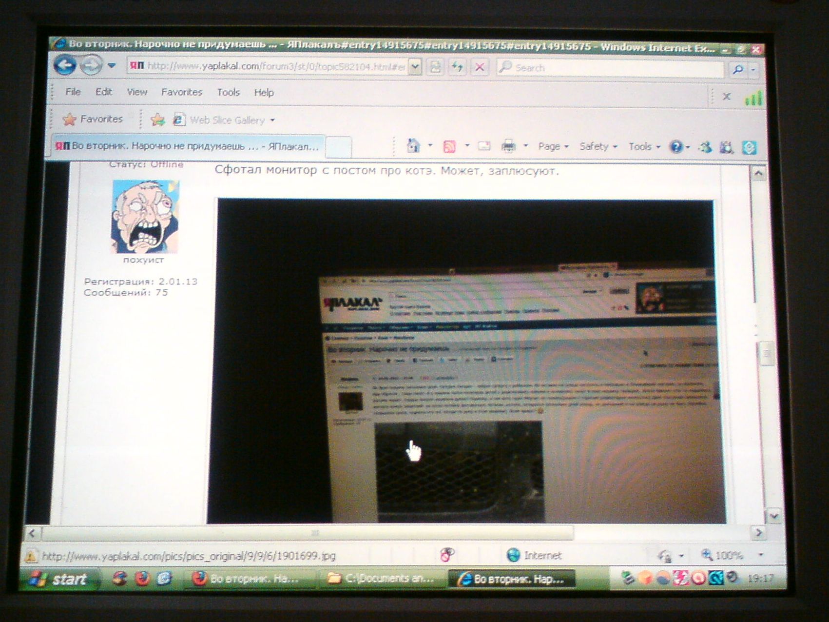 Сфотал монитор с постом про котэ. Может, заплюсуют.