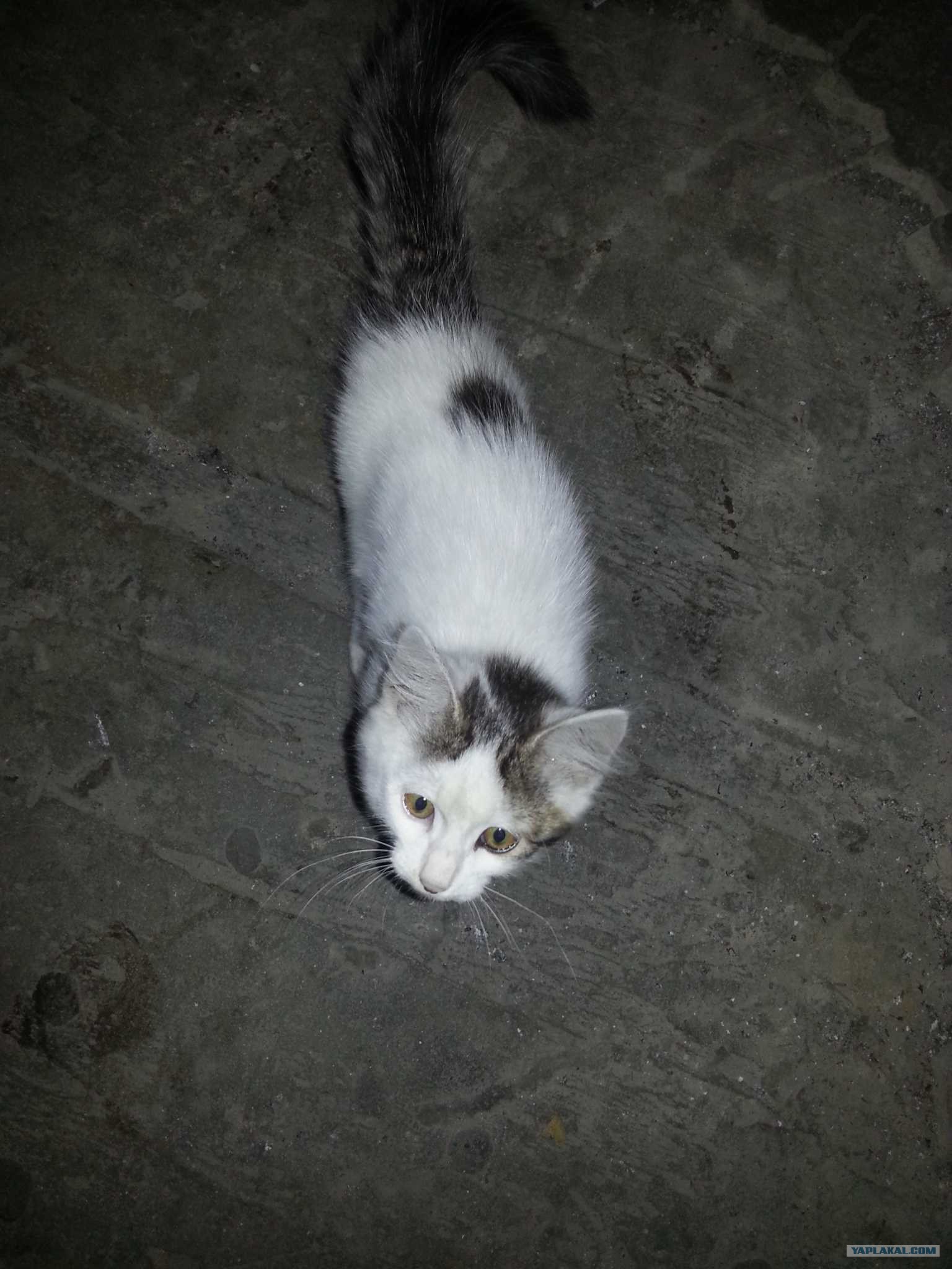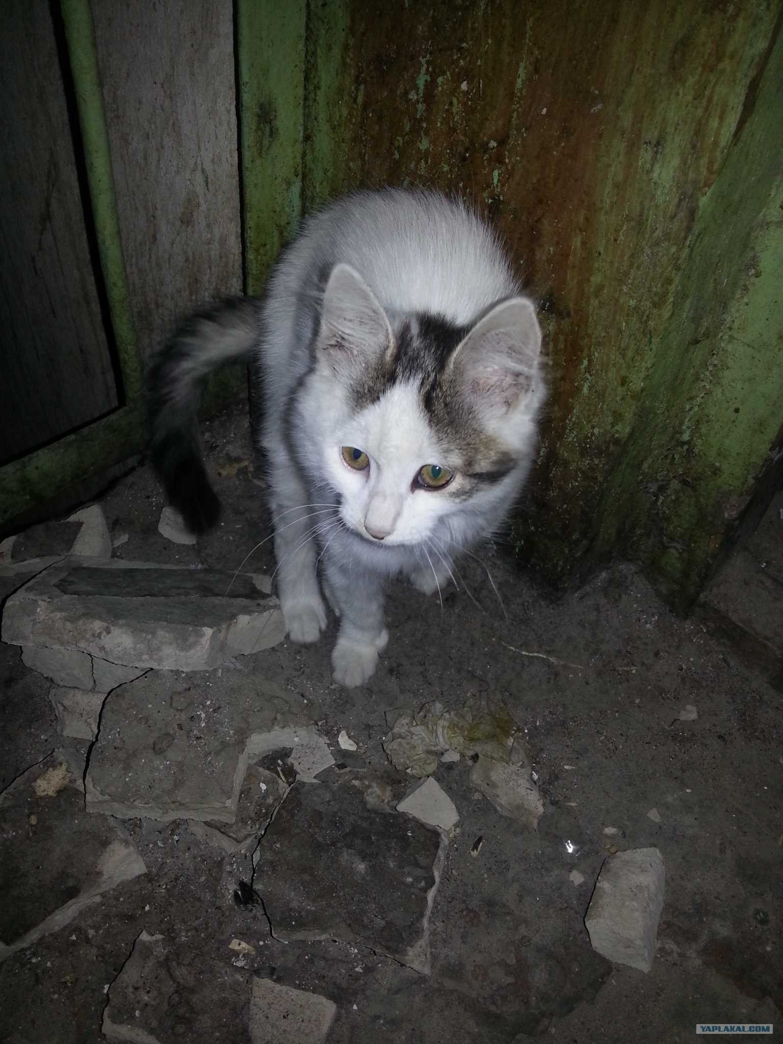 Почти год назад, зашел в гости к маме, живет она в 5-ти этажке и на 5 этаже сидел замызганный котэ.