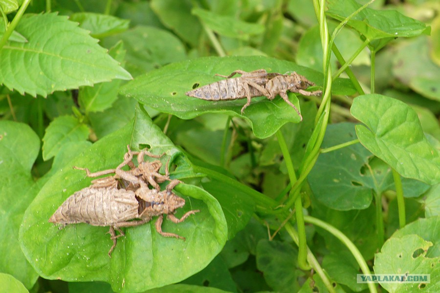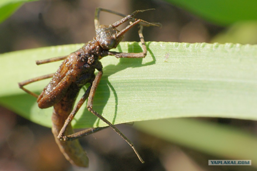 Сфотографировать момент выхода хотел давно, но обстоятельства не отпускали. Когда пришёл на берег речки вся трава была в пустых шкурках. Думал что опоздал.