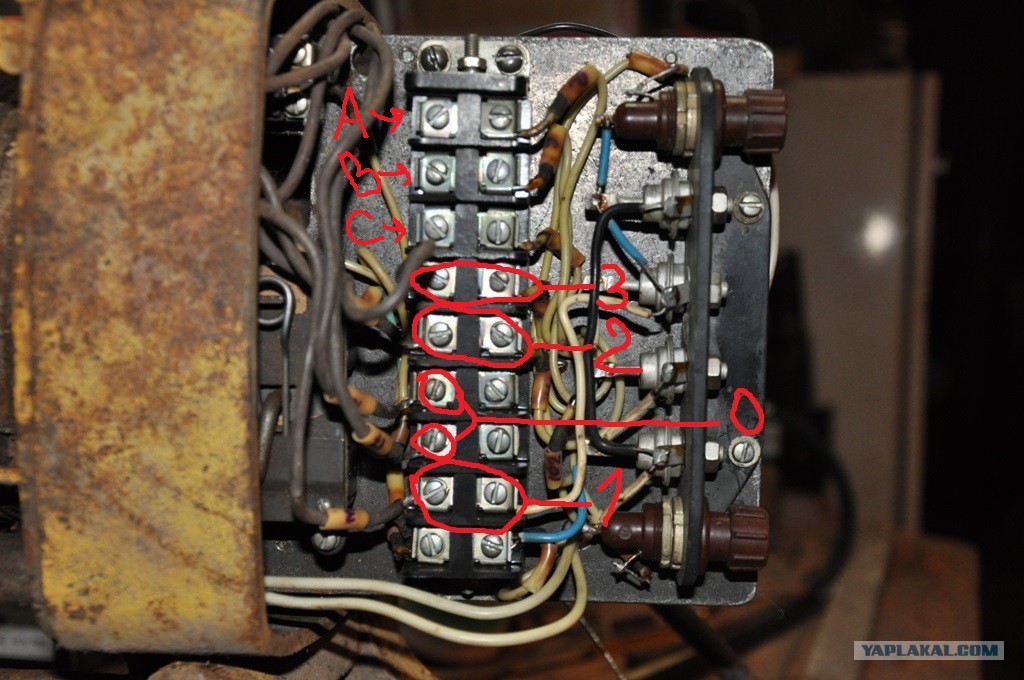 А питающие провода приходили на клеммник, контакты А, B, C.