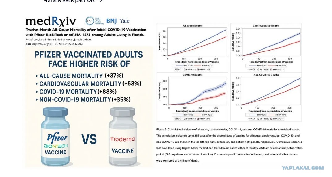 В исследовании, которое все еще находится в стадии подготовки к печати, были проанализированы данные более миллиона получателей программы Medicaid во Флориде. Если экстраполировать данные по стране, то число погибших только от прививки от Pfizer превысило 470 000 человек всего за один год.