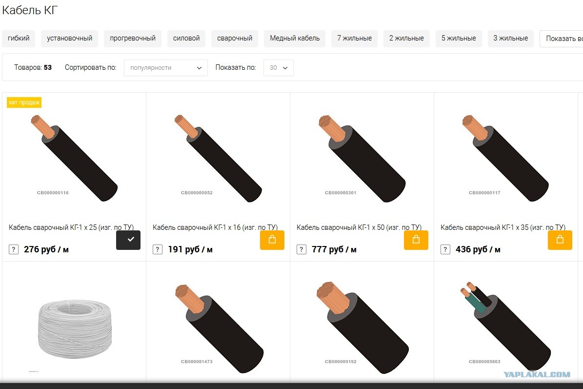 себе купил на Ресанту 190 кабель 16кв.в резине ...2.5 м на массу и 3.5 м на держак..+ самодельная струбцинка на массу..