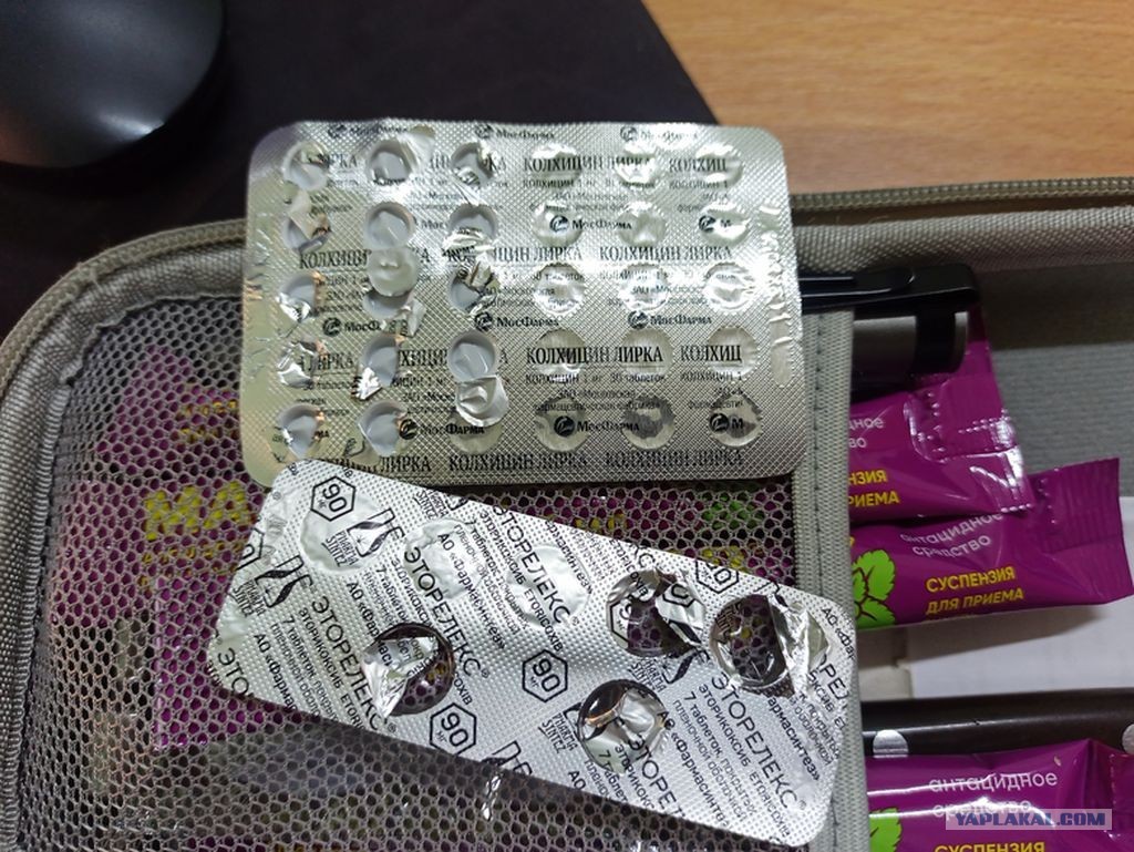 Колхицин, таб. по 1 мг и Этерококсиб, таб. по 90 мг - всегда с собой.