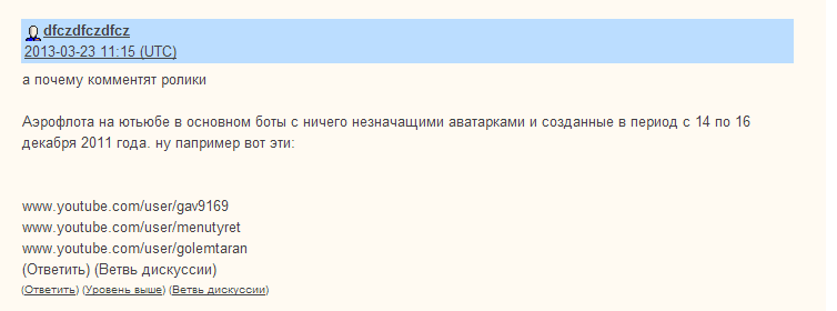 Характерная особенность «ботов-стахановцев» – работать на убой. Например, аккаунт dfczdfczdfcz в моем посте три комментария разместил с разницей в 1 минуту. Все его комментарии появились 23 марта.