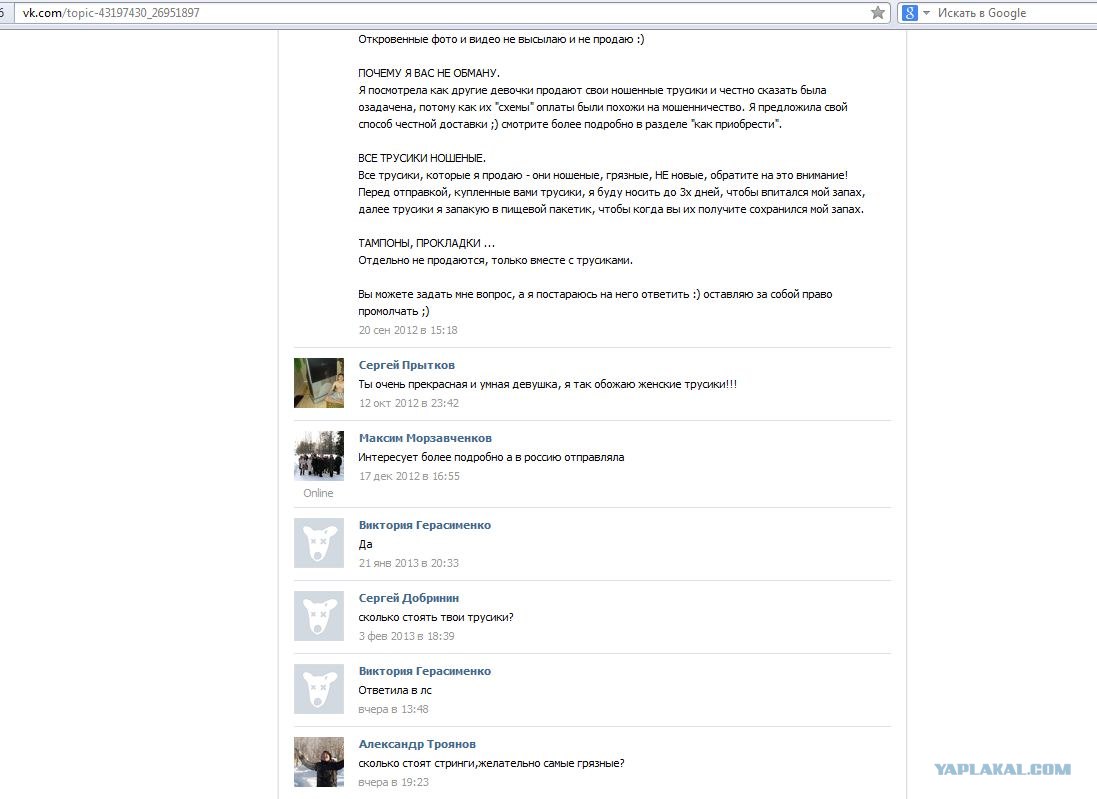 Как всегда, комментарии круче самой темы)) Могу недорого сбагрить труселя братца, пару сотен старых носков ну и обоссаное котами покрывало lol.gif Может кому и такое нравится)