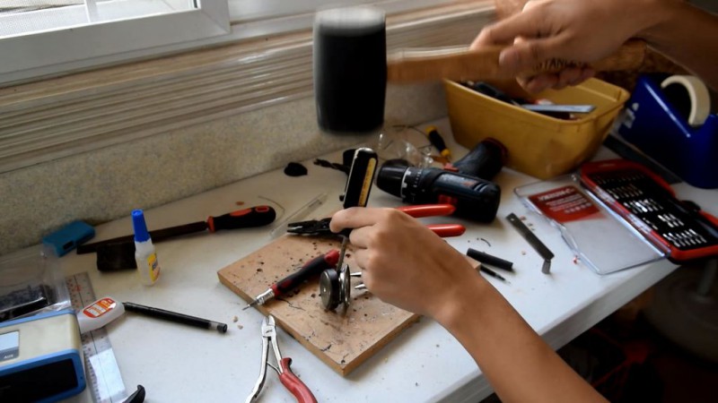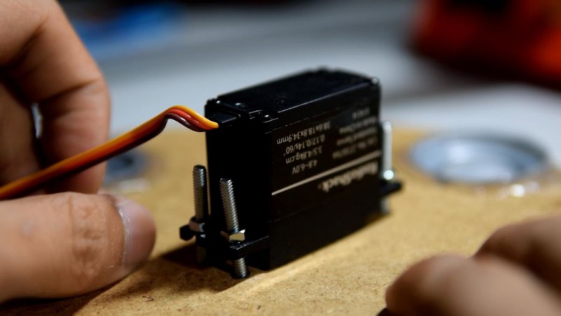 BB8 имеет магнитный механизм, который удерживает голову в вертикальном положении. Он состоит из двух частей – внешней и внутренней. В моем проекте я приклеил молекулярным клеем четыре шариковых дезодоранта (они служат в качестве самодельных роликов) на круглую деревянную пластину. Далее я прикрепил сервопривод с двумя магнитами. Пластина прикреплена к основанию с помощью удлиненных деревянных стержней.