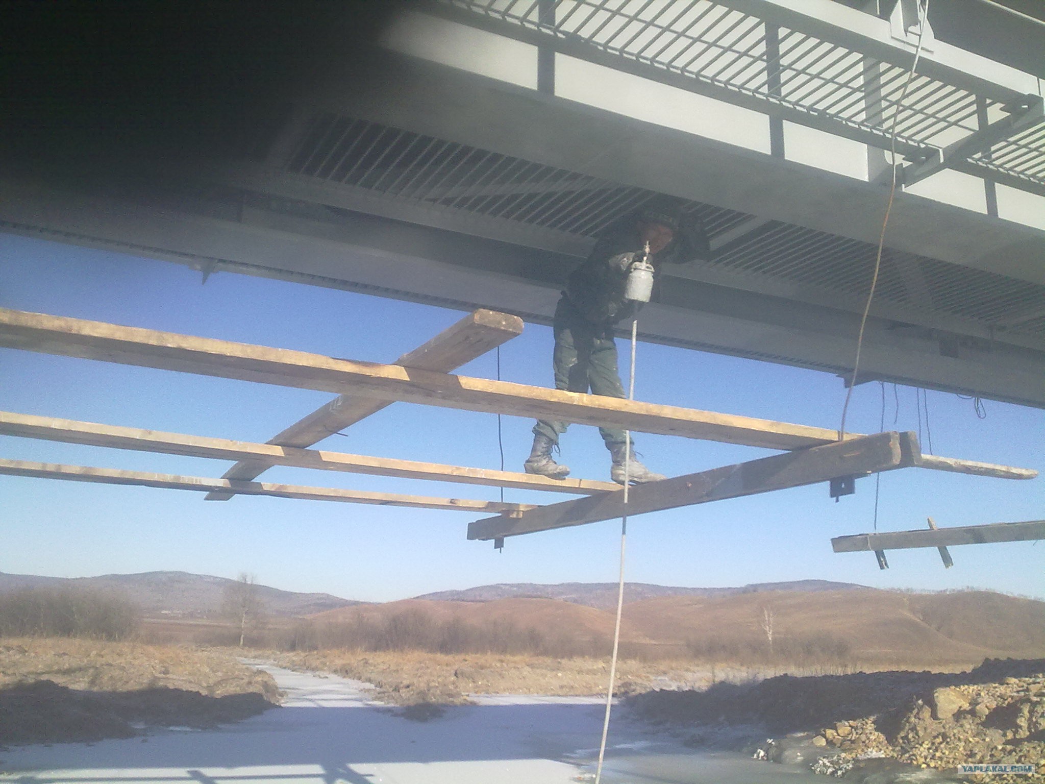 2012,уже мороз,а мы мост к сдаче красим...а кто-то конца света ждал