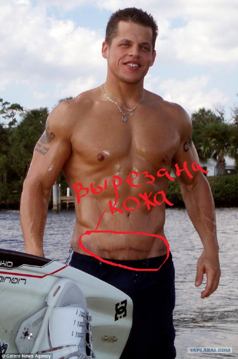 фотки фотошоп, в том плане, что такую фигуру можно было бы сделать, но лишней кожи будет дохера, и то что он чето там срезал - это все видно будет по шрамам