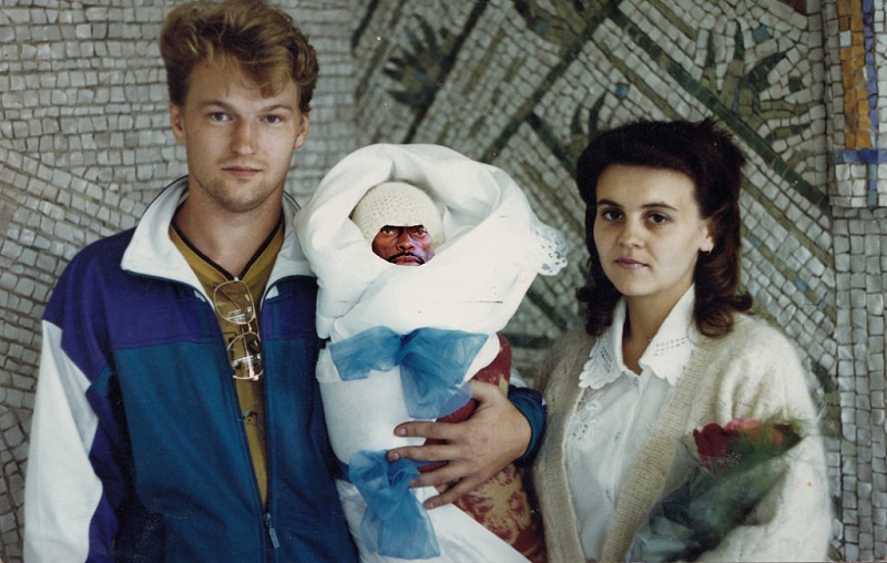 Это я с женой в роддоме 24 года назад, а в руках у меня выросший автор этой фотожабы.
