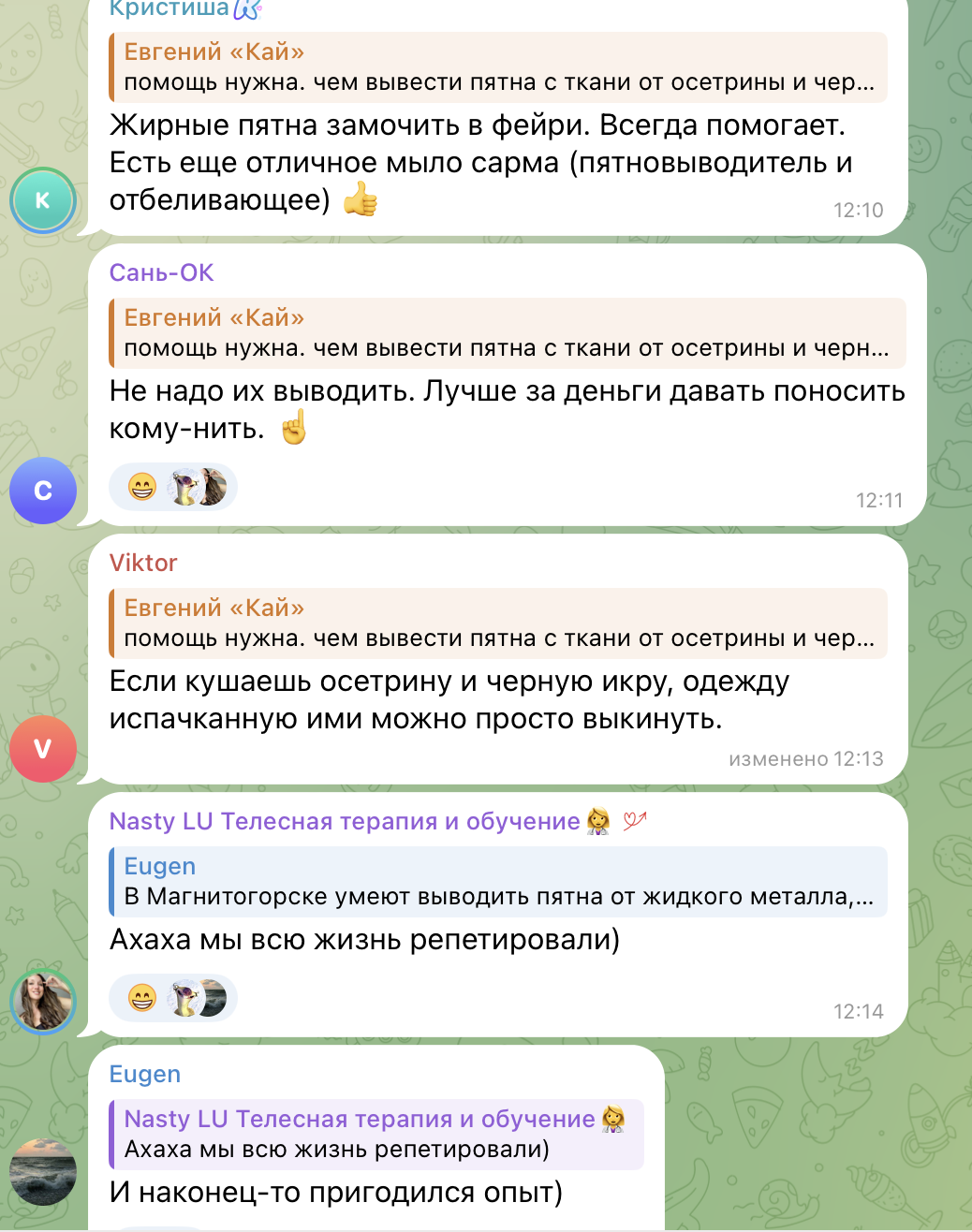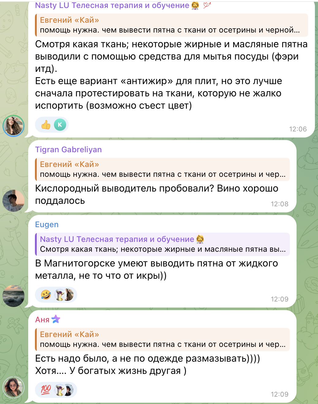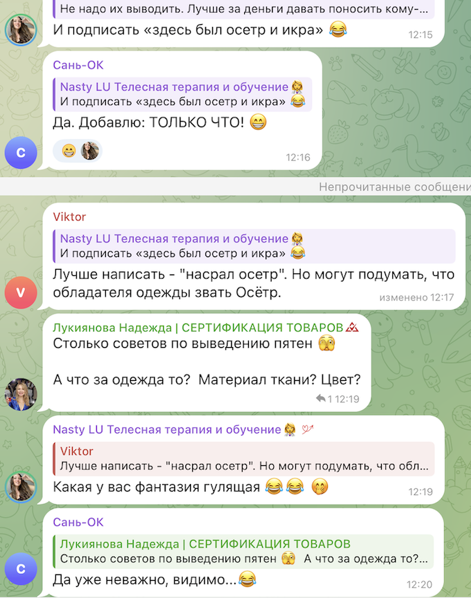 прикололся закинул в сочинский чат просьбу дать совет как вывести пятна)
