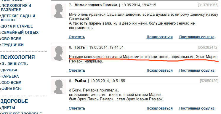 Да, в принципе то что многие приписывают левые слова знаменитым людям это одно и это не ново. То что люди приписывая слова другим людям путают их пол - это второе, и это редко. Но самое что ни наесть бесящее - что Ремарк стал знаменит в интернете не за его творчество и не за то что 5 - 10 тупых телок запостили цитаты не задумываясь кто их сказал. Ремарк не так уж и знаменит ведь - те кто знают что он мужчина, а не женщина, не кичатся данной информацией. Девушек упрекнули максимум раз или 2. Проблема в том что постят "тупость" баб точно такие же люди без понятия кто такой Ремарк мужик или баба. И население узнает об этом только смотря демотиваторы...