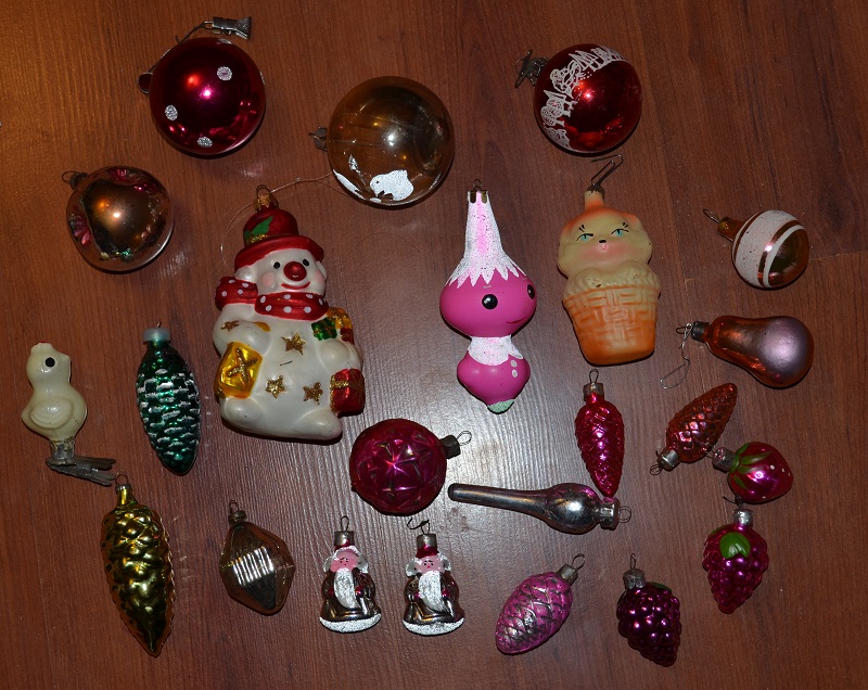 Мне от родителей остались несколько коробок с такими игрушками. Чего там только не было, вся елка была увешана даже места не хватало куда цеплять. Не помню в каком году кот завалил елку и почти все игрушки побились.