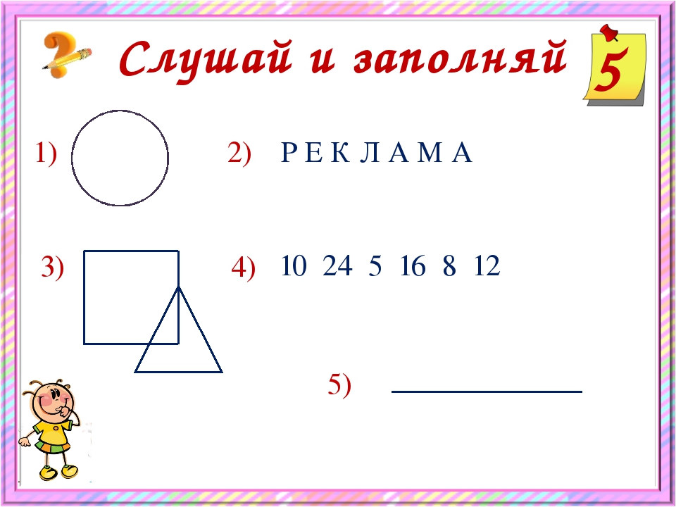 Под цифрой (3) изображены квадрат (4 угла, по количеству согласных букв) и треугольник (3 угла, по количеству гласных). В сумме у них 7 углов.