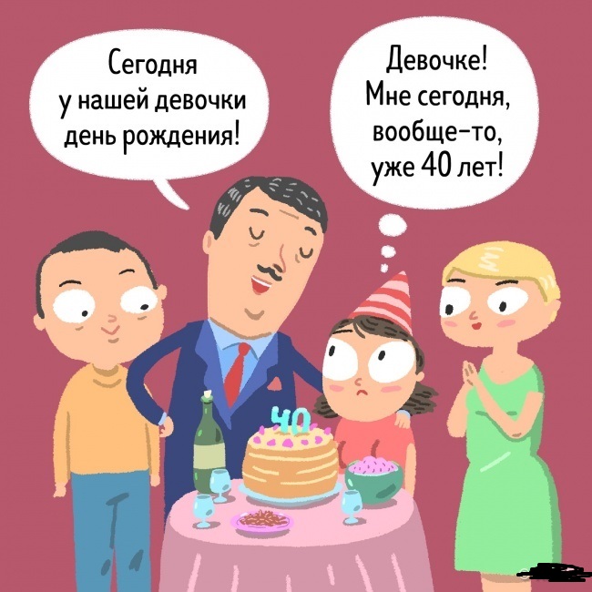 Судя по картинке, это просто охреневшая и глупая девочка. Радоваться надо, что в 40 лет сама как ребенок и родители молодо выглядят и полны сил.