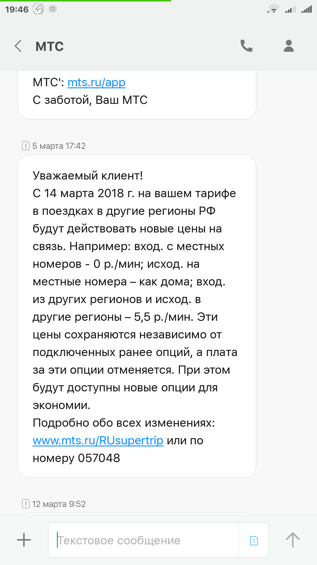 Мтс, уже 5 марта смс была. 5,5 рублей. Была подключена услуга "везде как дома ", теперь в ней смысла нет