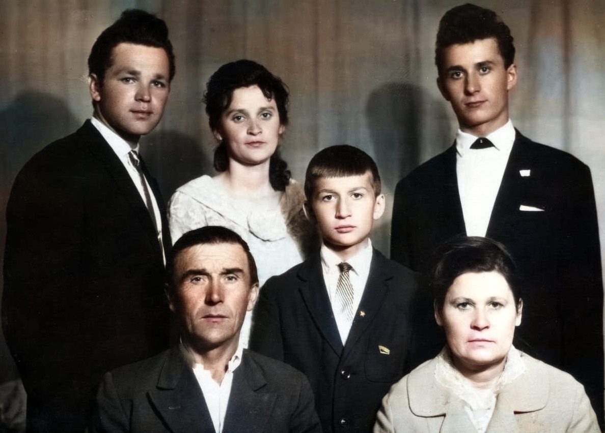 Мама с Батей слева, братья (рядом), Дедушка с Бабушкой рядышком. 60-е.