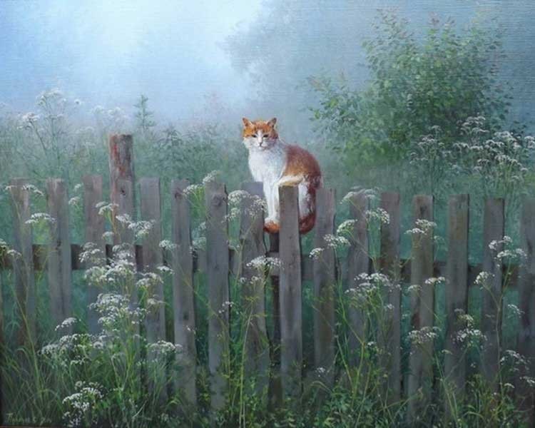 Прошу, не слушайте его. ЯП - это про-котовский сайт. А в Арт-Воскресенье ещё и живописные котики. Вот этот, например, вызывает умиротворение: