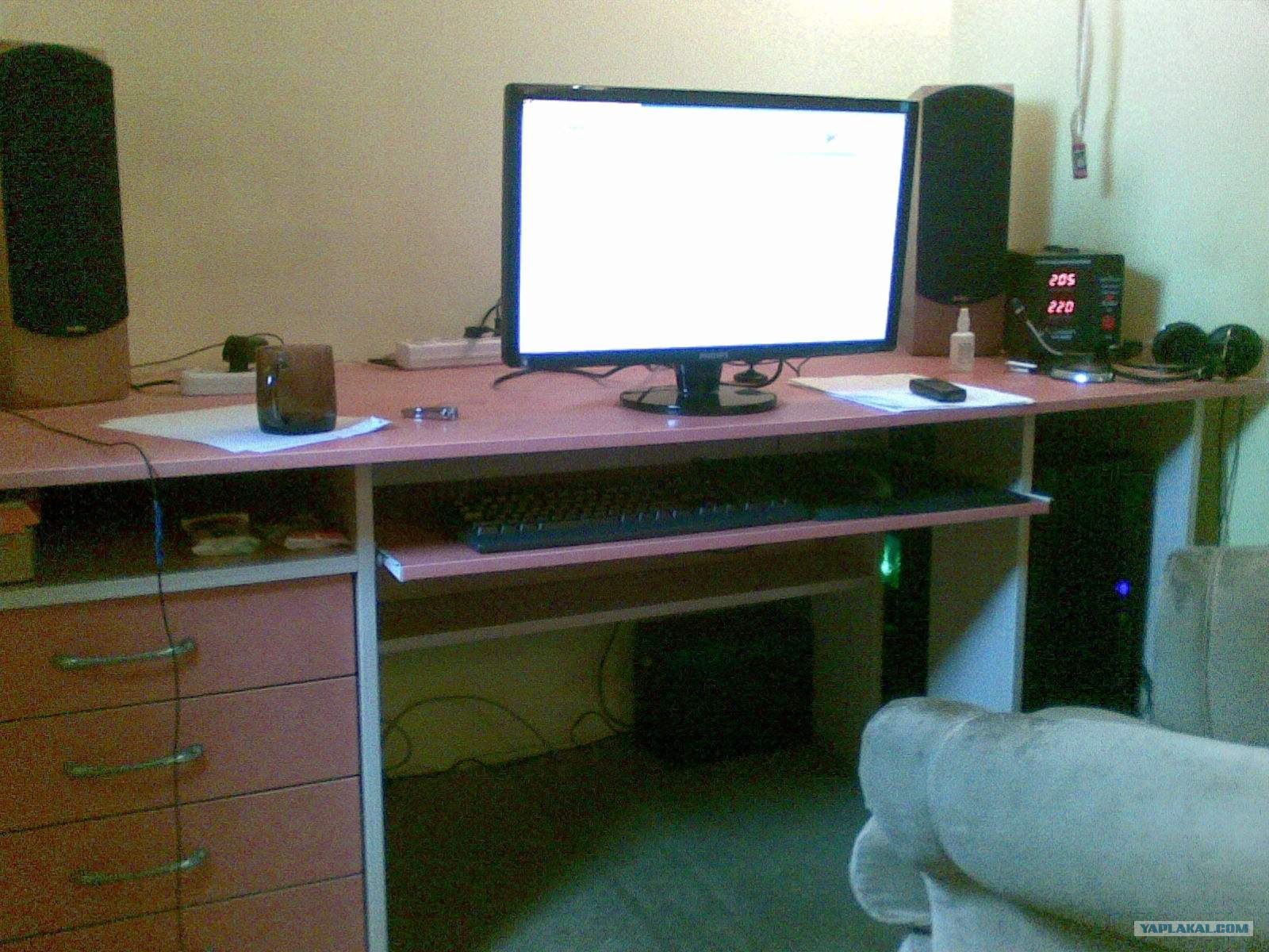 Вот у жены комп старенький и впритык к стенкам. Не знаю, что будем делать в случае апгрейда. Резать стенку нет смысла, там ящики.