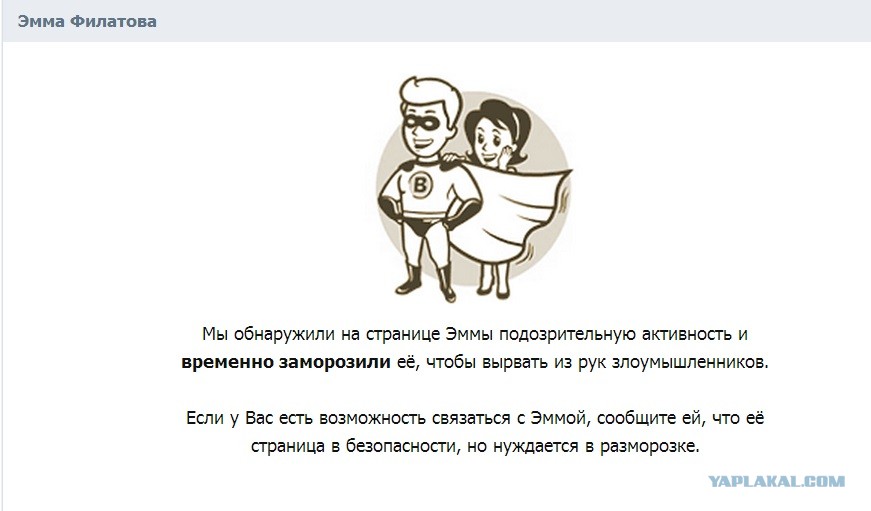 Мы обнаружили на странице Эммы подозрительную активность и временно заморозили её, чтобы вырвать из рук злоумышленников.