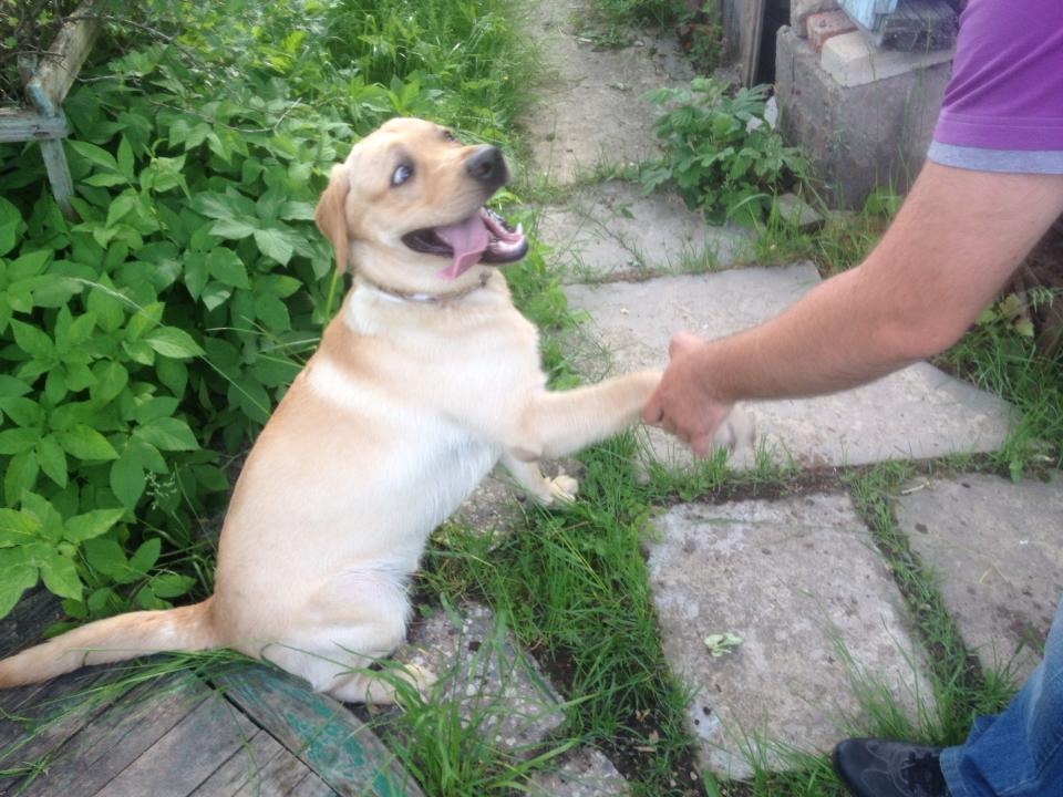 Для семьи лучше лабрадора ничего нет. Зато как охранник - 0. Хотя, видел как на ОКД одного лабра на защиту ставили... смешнее в жизни ничего не видел. Вот моя "злющая" чупакабра уничтожает ветку.