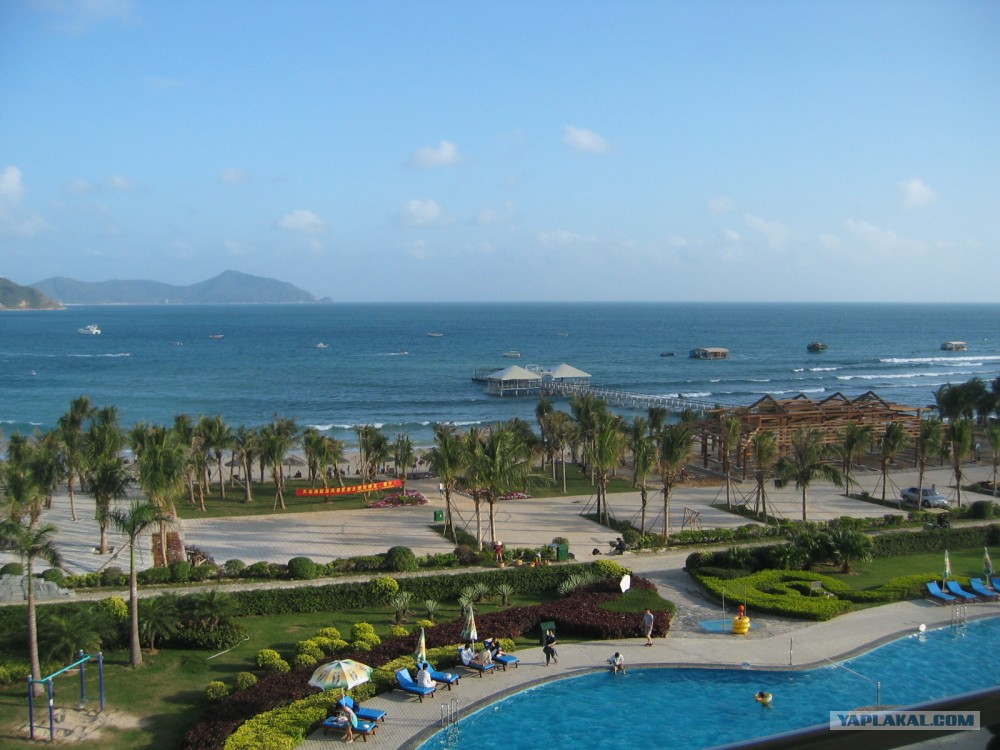 Вот, кстати, "разрекламированные" чуть выше китайские пляжи, себя на фоне пляжа из сатанинской скромности замазал, фотку из окна делал сам. Хайнань.