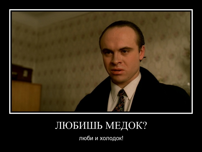 Но этого явно недостаточно, чтобы в России этот герой стал культовым. Широкому пласту россиян необходимо нечто большее! И тогда режиссер очень метко бьет по еще одной свойственной жителям России нелицеприятной черте: имперский шовинизм и завистливая ненависть ко всему миру, ко всему непохожему и отличающемуся! Устами Багрова режиссер дает выход наружу мечте каждого ватника: сказать хачу «гнида черножопая!», мочить хохла с криком «сука бандеровская» и предъявлять ему «вы мне еще за Севастополь ответите». Пугает только то, что, помимо прочего, главный герой картины имеет не только ебач недоразвитого имбецила (полное отсутствие эмоций, монотонная речь и т.д., и т.п.), но и сам является человеком в высшей степени невежественным и недалеким… Пугает потому, что большинство россиян прониклись этим персонажем, что нам скажет лишь о том, что врали, когда говорили будто бы некогда у нас было лучшее образование в мире… Умственное развитие Багрова в невыгодном свете демонстрирует вообще каждое его действие на экране, каждая его фраза, каждый диалог с его участием, например: