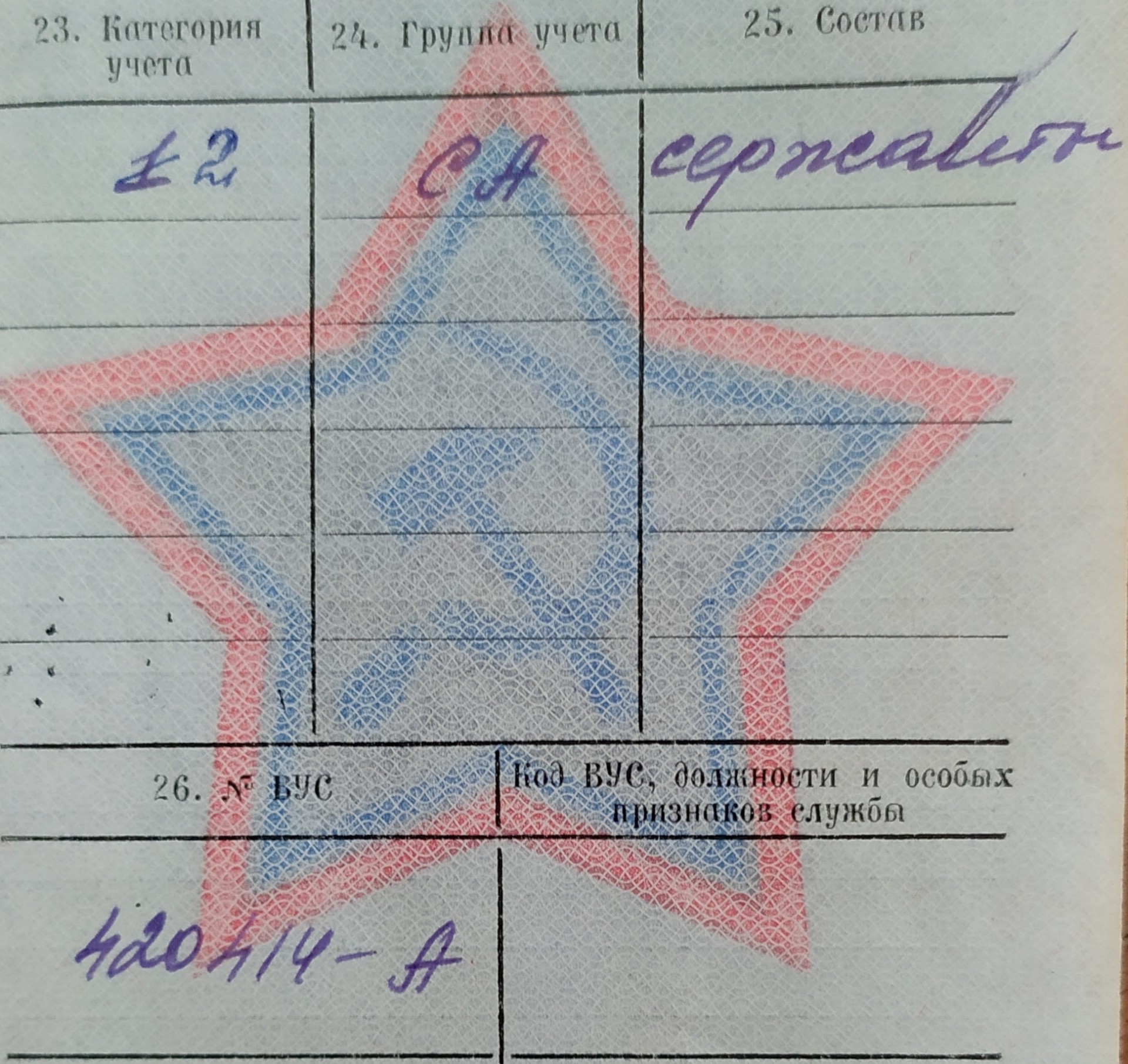 ВУС цифрами не помню, но специальность, механик-радиотелефонист ЗАС 1986-88 в/ч 35795