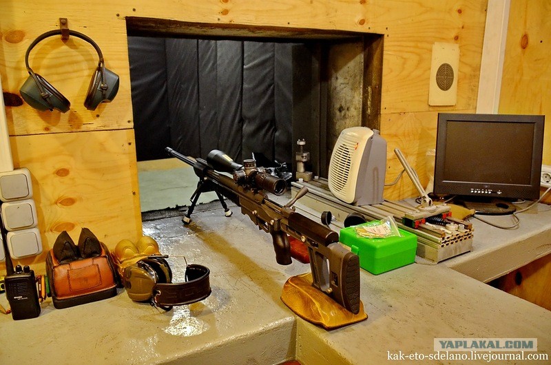 Испытания точности оружия проводят мастера международного класса по стрельбе. Помещение здесь небольшое, примерно 2 метра на 2. Надеваем наушники, чтобы не оглохнуть.