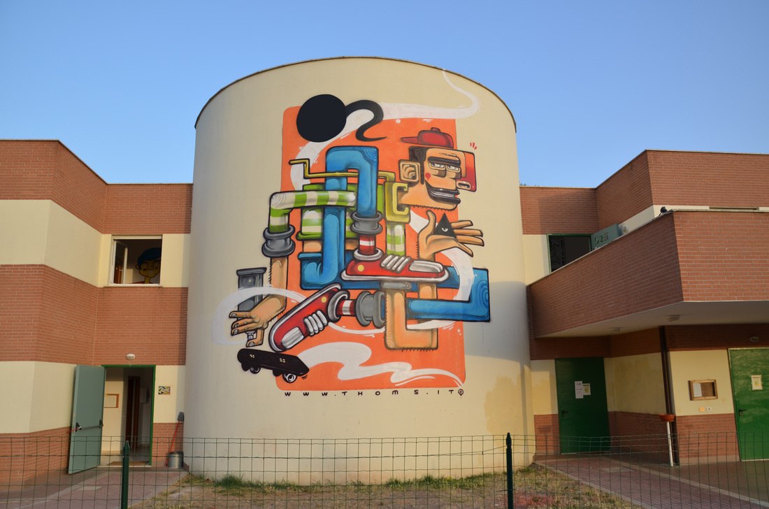 Это громадный рисунок занимает по высоте 2 этажа на стене магазина Машбир.