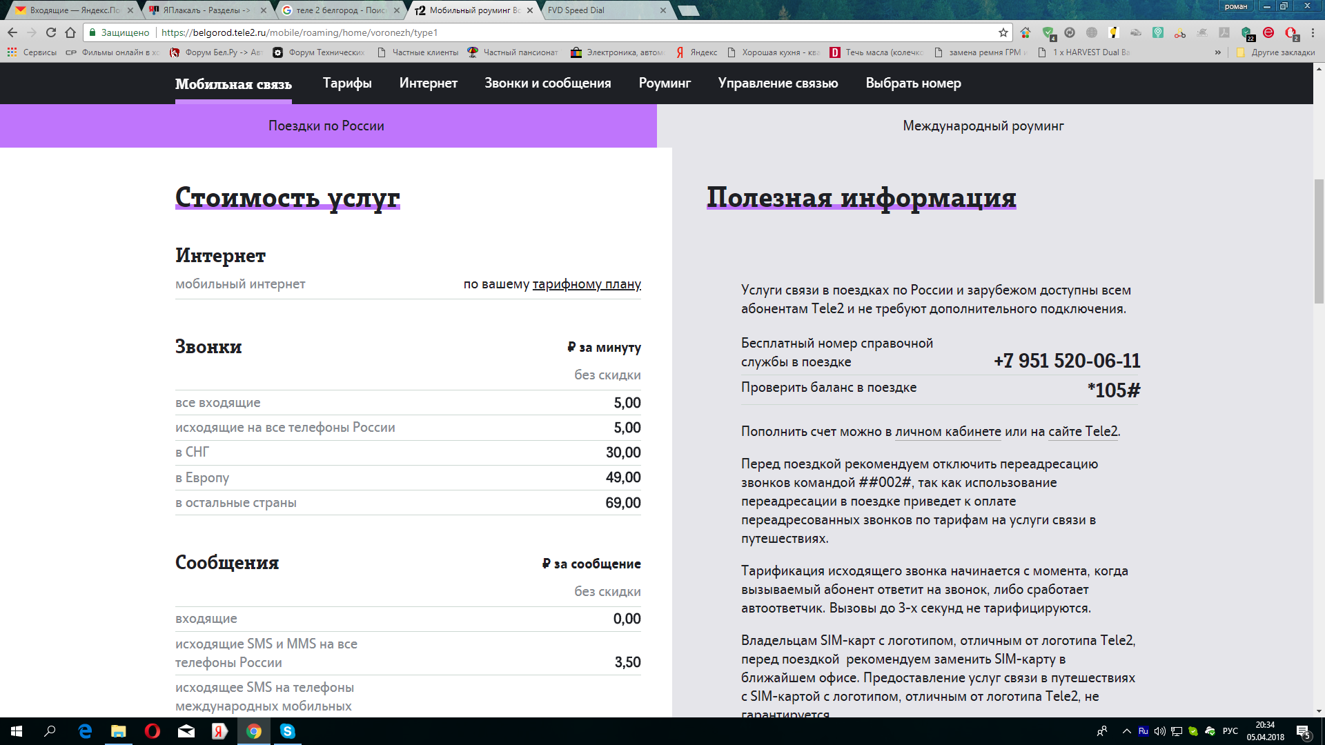 Любые входящие вызовы из региона пребывания – 0 рублей за минуту, а вот другие входящие – 5,5 рублей за минуту. А вот это уже совсем не здорово. Ведь в домашнем регионе Вы не платите за входящие из других регионов России? Именно в таких деталях должна крыться суть отмены роуминга! Но нет, увы. Если Вам позвонят из Вашего домашнего региона в регион Вашего пребывания, то извольте заплатить 5,5 рублей за минуту входящего вызова.