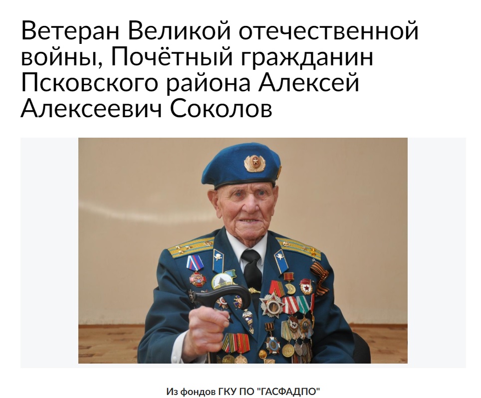 На втором фото, ветеран настоящий...полковник ВДВ Соколов, Алексей Алексеевич!!!!Алексей Алексеевич Соколов (17 [30] марта 1911, Нижний Новгород — 4 мая 2013, Псков) — гвардии полковник в отставке, почётный председатель Совета ветеранов 104-го гвардейского Краснознамённого десантно-штурмового полка, почётный ветеран 76-й гвардейской Черниговской Краснознамённой десантно-штурмовой дивизии.