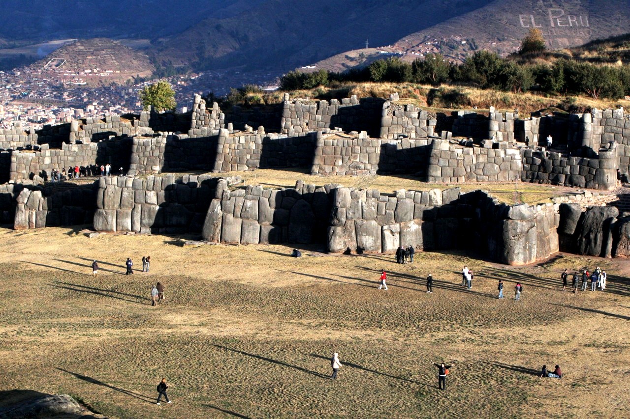 Гигантские каменные блоки нижней стены "крепости" Саксауман (Перу).