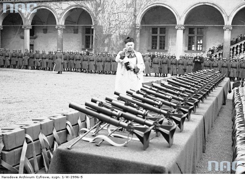 46mm grenade launchers gifted by the public are being devoted by a priest, 1938-11