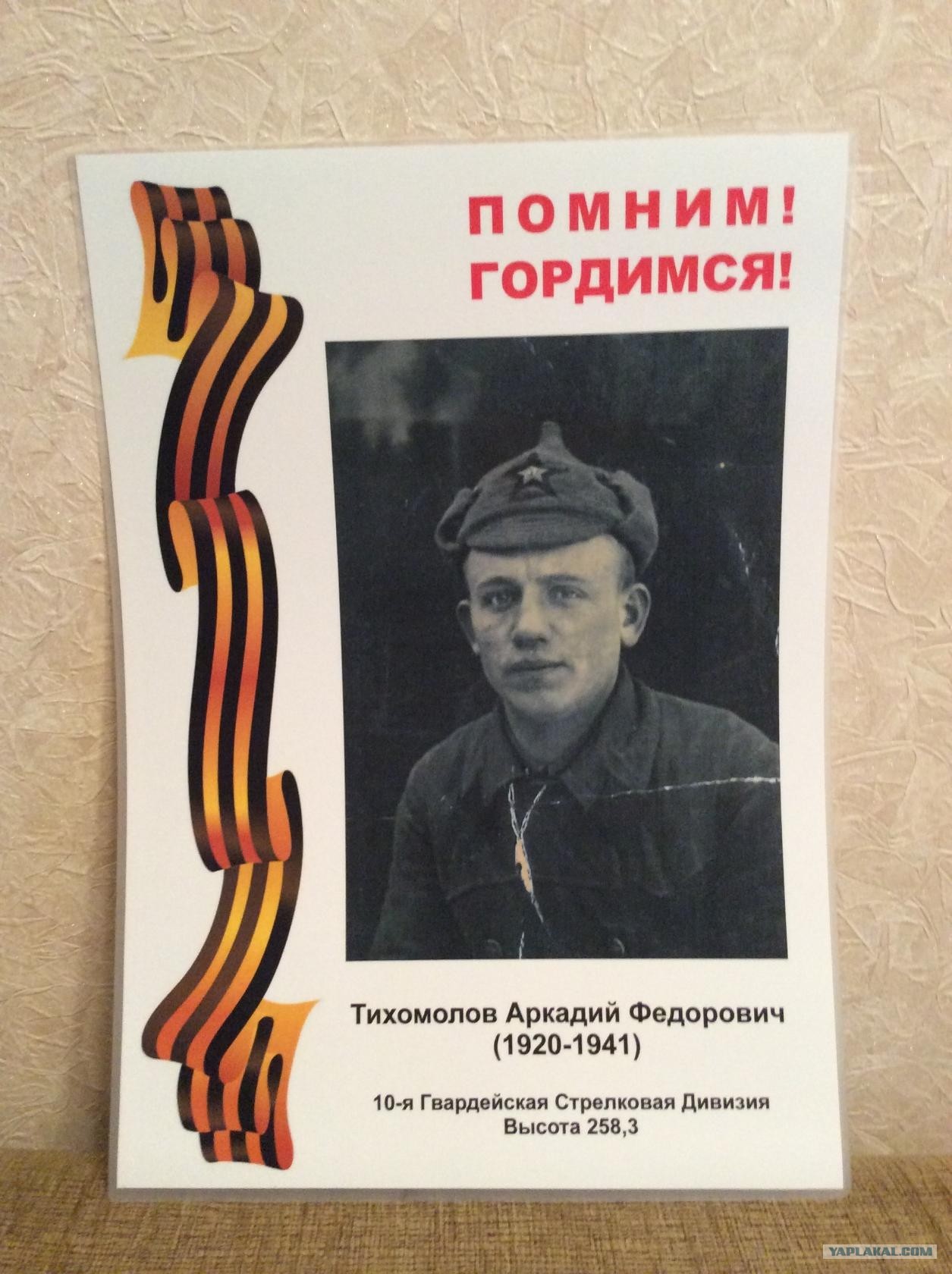 Здравствуйте все ! Что-то с 2014 года вестей нет, всё так плохо да ? Ладно. А я всё равно напишу. Спасибо admiral888 ивсем кто принимал участие в публикациях, раскопках, перезахоронениях и добрых делах во славу наших героев. Наткнулся на сайт во время поисков погибшего дяди, родного брата моего отца, Аркадия Федоровича Тихомолова 1920 г. рождения и погибшего 30.12.1941 года на высоте 258,3. Сам он из города Тейково Ивановской области.