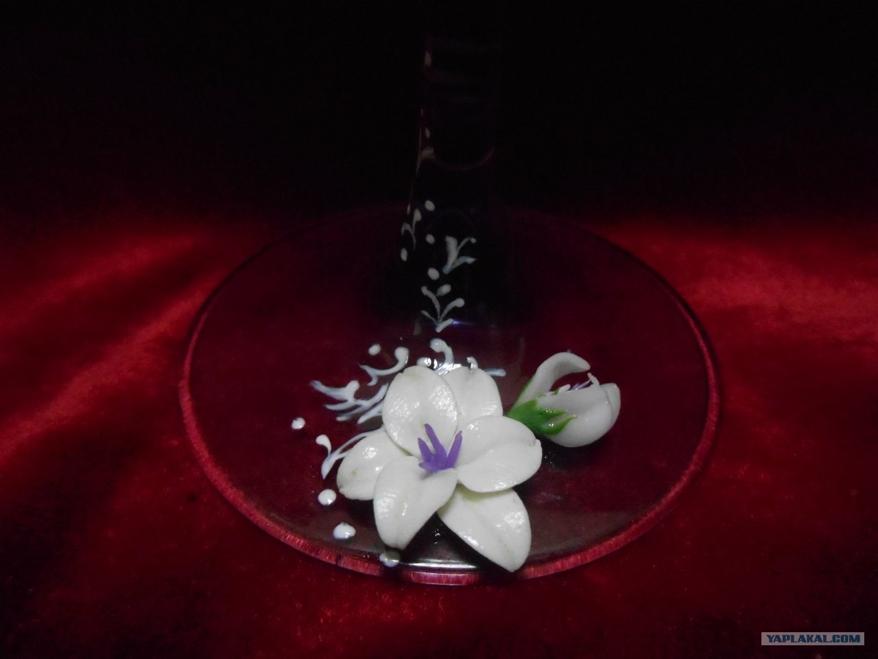 Дам пару советов-старайтесь работать в перчатках(на работах видны следы пальчиков) ну или если не можете в перчатках(я не могу) когда работа уже закончена-берите подсолнечное масло и стирайте следы.Можно кисточкой.По моим наблюдениям масло глину чуть чуть плавит,чтоль.Только вот как вы лепестки будете смазывать-для меня загадка,я цветочки не люблю..