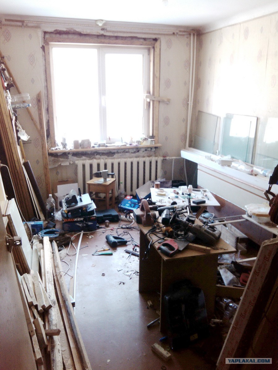 Предлагаю еще выложить содержание тещиной комнаты. Раз в месяц начинает бесить, что в тещину комнату не зайти за инструментом, потому что куча вещей лежит на полу. Прибираюсь, лишнее выкидываю, остальное раскладываю по полочкам, любуюсь. Предупреждаю всех, чтобы все, что берут, клали обратно на то же место, откуда взяли. Через месяц опять свалка. Как бороться? Замок врезать?