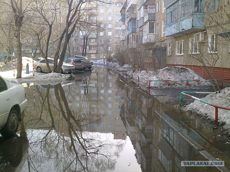 Да грязь, лужи,но это весна, снег ещё даже не до конца в то время сошёл.